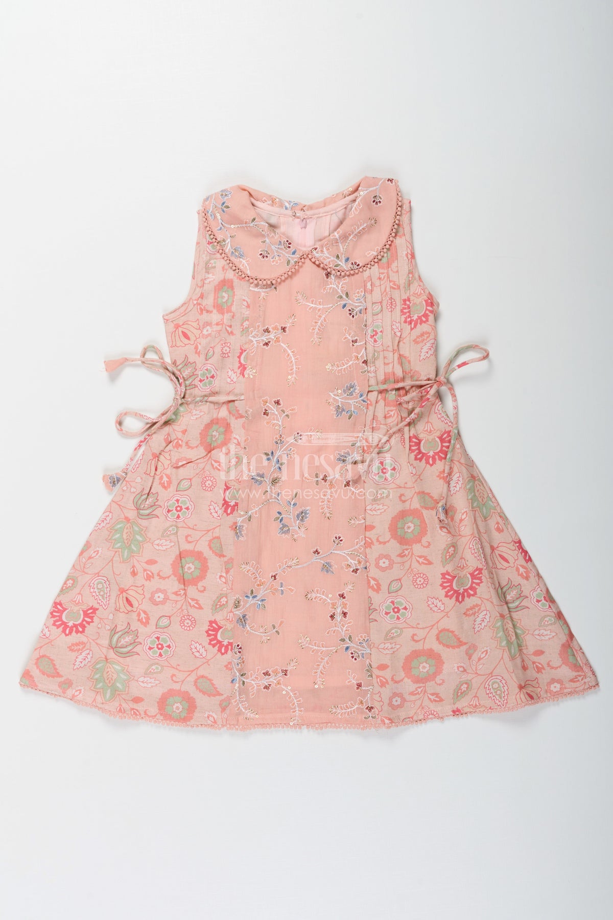 The Nesavu Girls Cotton Frock Girls Cotton Frock Simple Style with Peach Digital Prints and Thread Embroidered Front Nesavu 22 (4Y) / Pink GFC1717A-22 Girls Cotton Frock Simple Peach Floral Design with Thread and Sequin Embroidery | The Nesavu