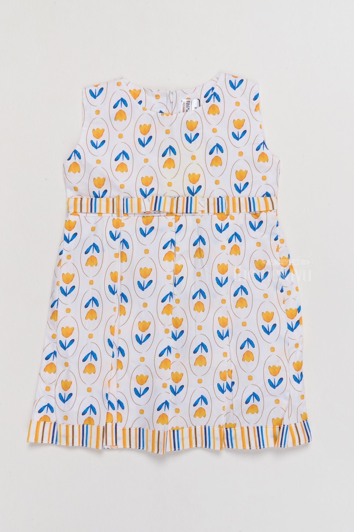 Simple Cotton Frocks for Infants with Yellow Tulip Print and Striped Waistband