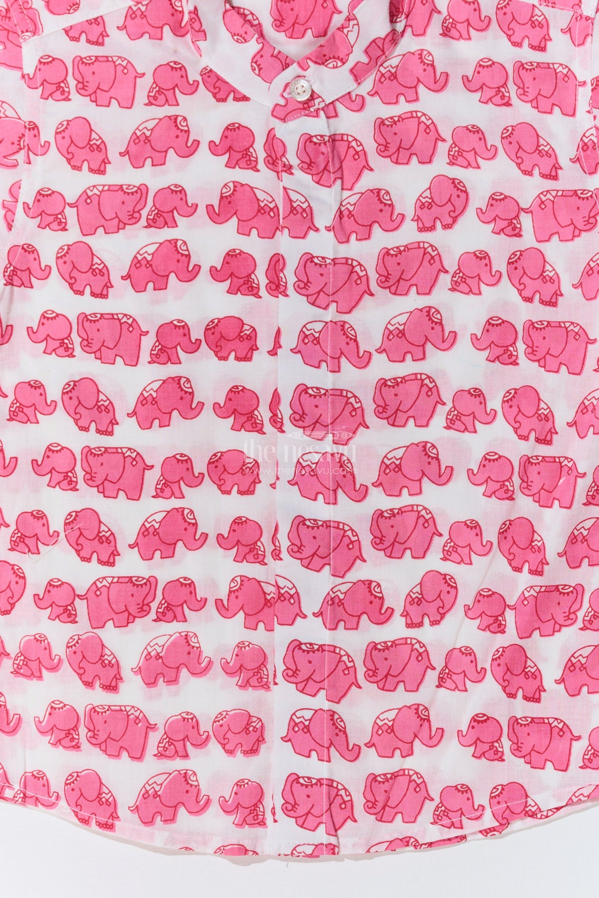 The Nesavu Boys Cotton Shirt Boys Trendy Cotton Shirts in Cotton Block Print with Cute Elephant Motif Nesavu 16 (1Y) / Pink BS247A-16 Boys Trendy Cotton Shirt Cotton Block Print Playful Elephant Print | The Nesavu