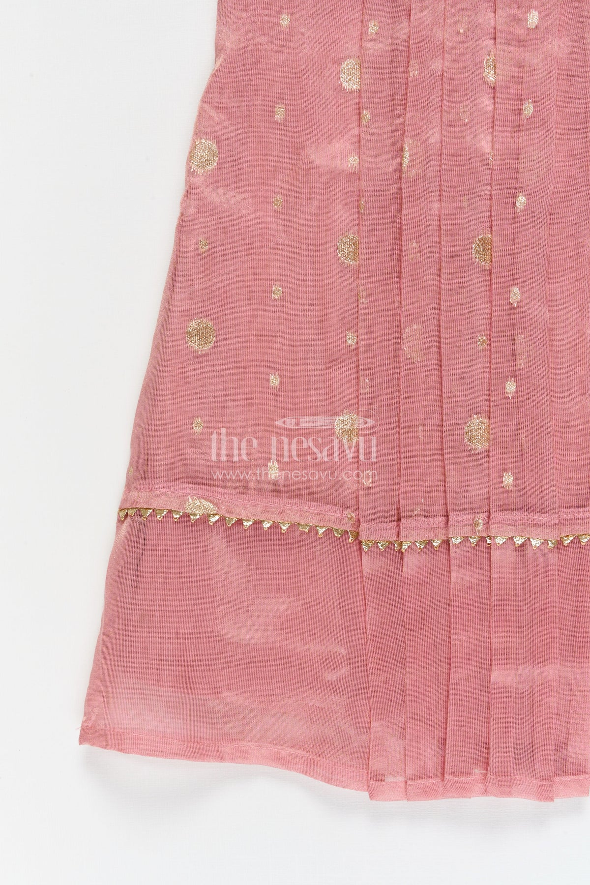 - Features delicate gold buttas throughout with crisp front pleats