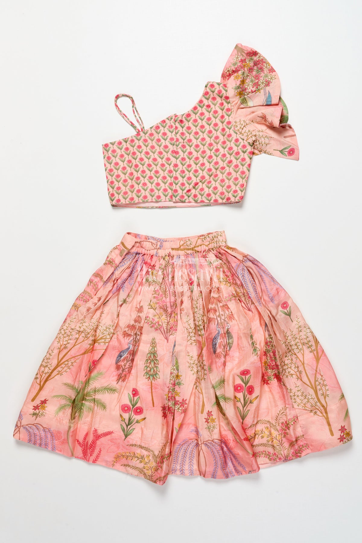 - This kids lehenga choli is crafted from soft viscose silk with digital print for an elegant finish