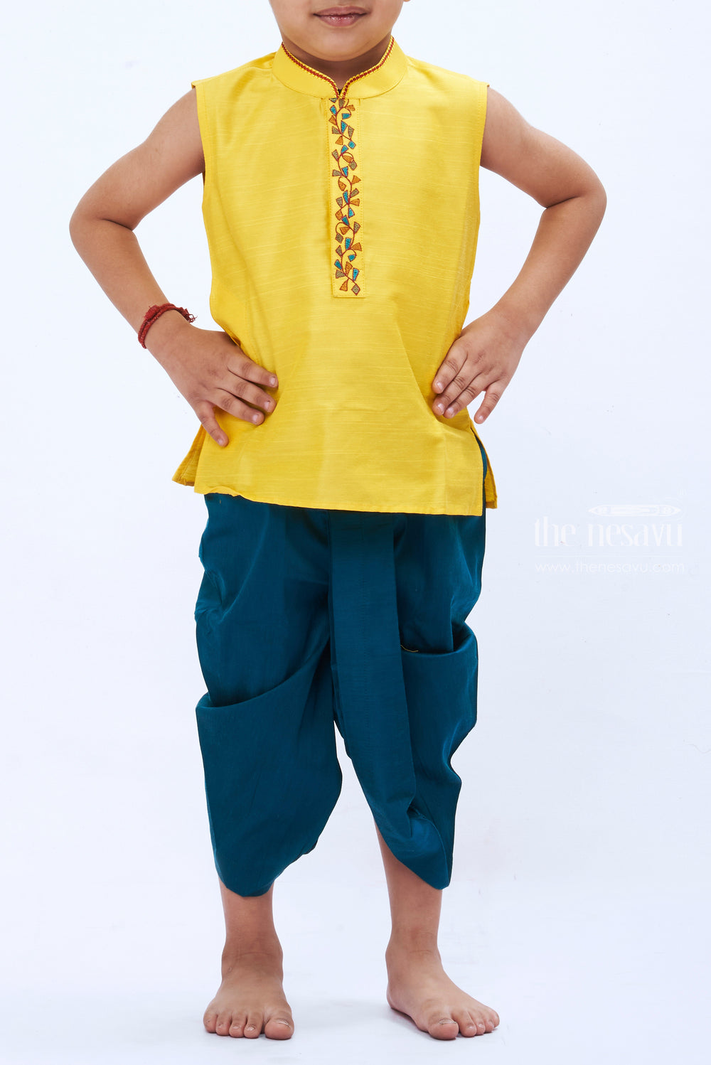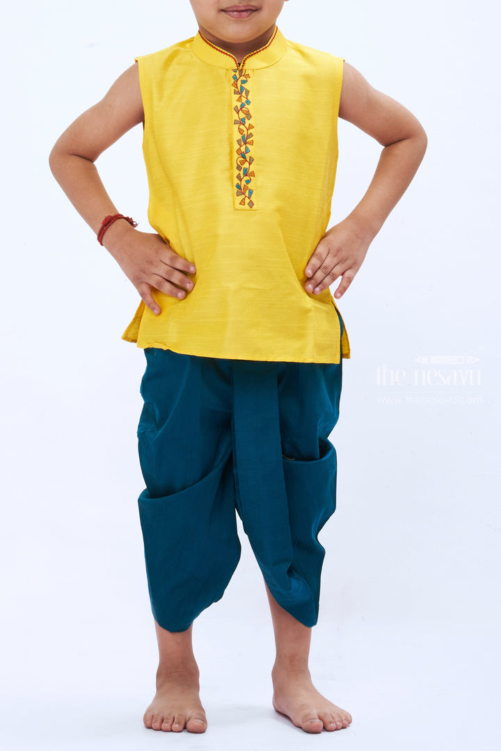 Festive Yellow Dhoti Set with Traditional Indian Kurta for Boys