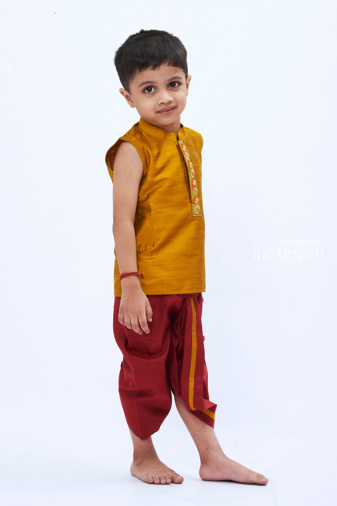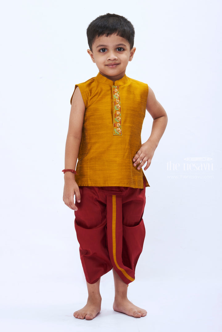 Mustard Yellow Kurta and Maroon Dhoti Set for Boystraditional Festive Ensemble