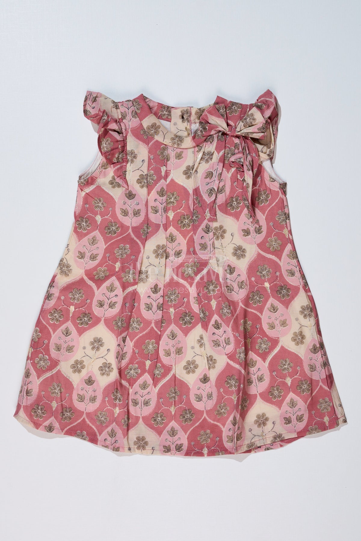 The Nesavu Girls Cotton Frock Girls Floral Print Long Frock in Muslin Silk with Pleated Design and Stylish Bow Nesavu Nesavu Girls Floral Print Long Frock Muslin Silk Pleated Design Stylish Bow