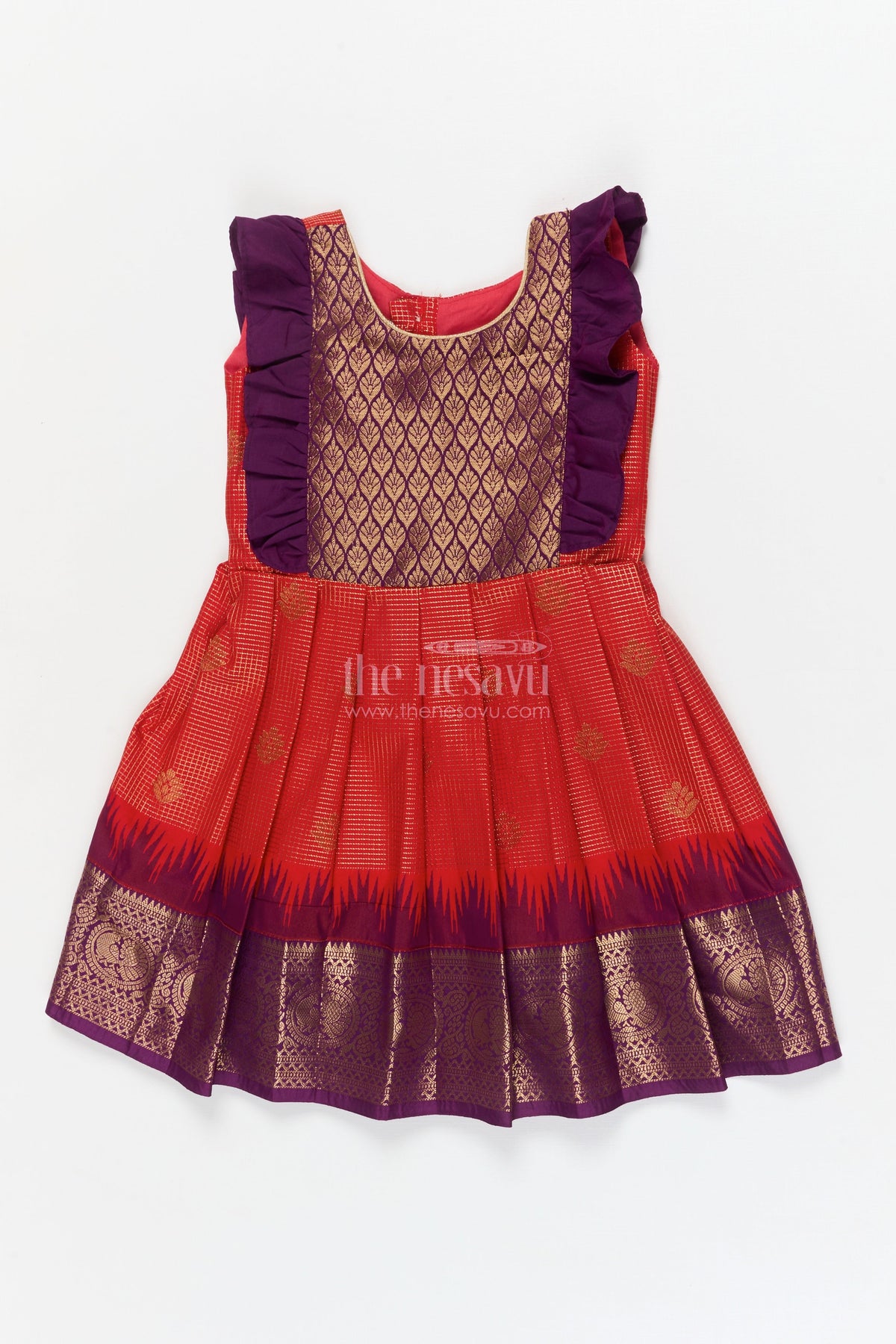 The Nesavu Girls Kanchi Silk Frock Baby Girl Kanchi Silk Frock for Weddings and Traditional Photo Shoots Nesavu 22 (4Y) / Red / Style 2 KSF039AB-22 Nesavu baby girl Kanchi silk frock for weddings, poojas, and traditional photo-ready celebrations