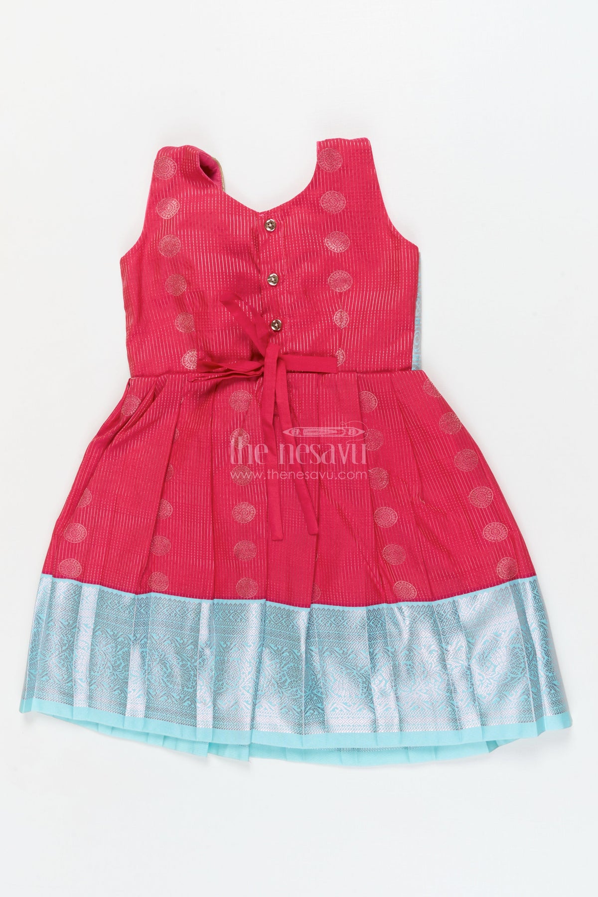 The Nesavu Girls Kanchi Silk Frock Baby Girl Silk Frock for Birthdays and Traditional Celebrations Nesavu Nesavu baby girl silk frock with zari border and overlay for birthdays and festive events