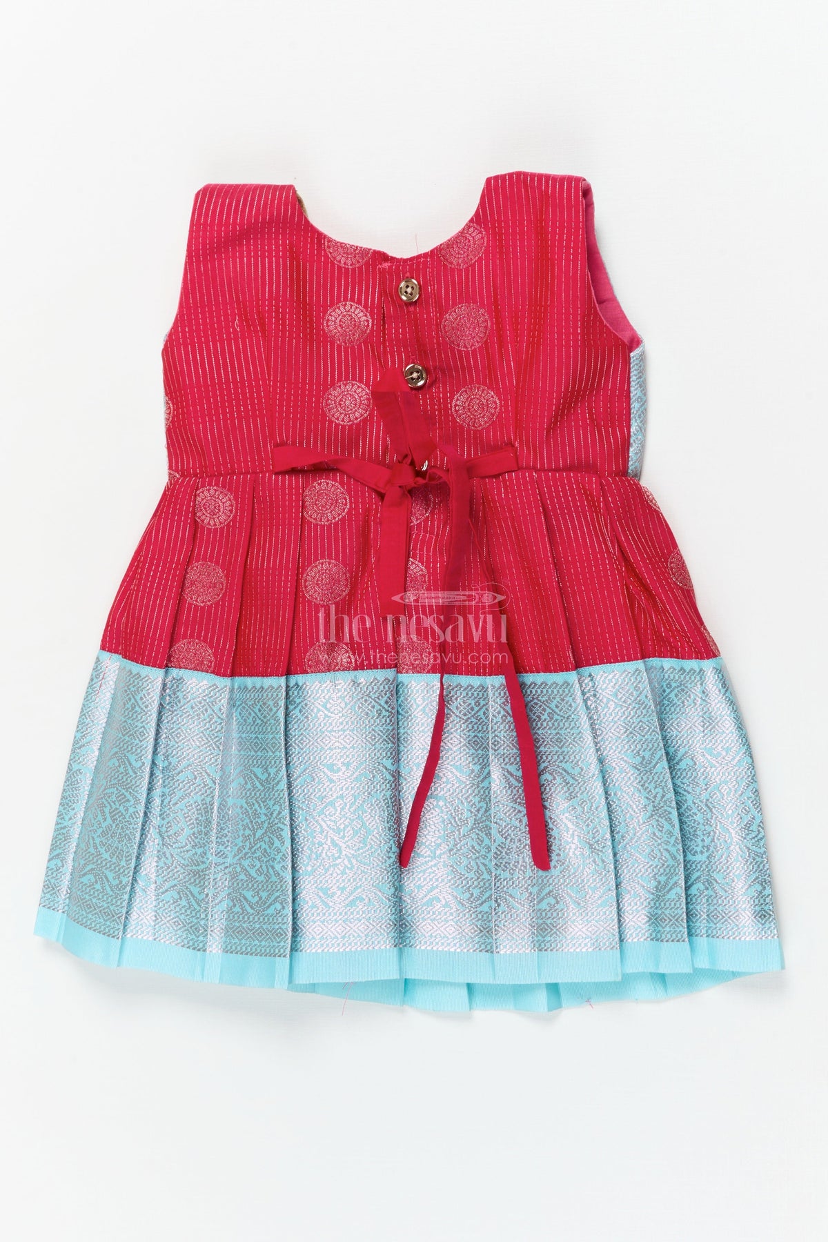 The Nesavu Girls Kanchi Silk Frock Baby Girl Silk Frock for Cultural Events and Festive Photo Moments Nesavu 22 (4Y) / Red / Style 2 KSF030AB-22 Nesavu baby girl silk frock with zari border and tie-up overlay for festive family occasions