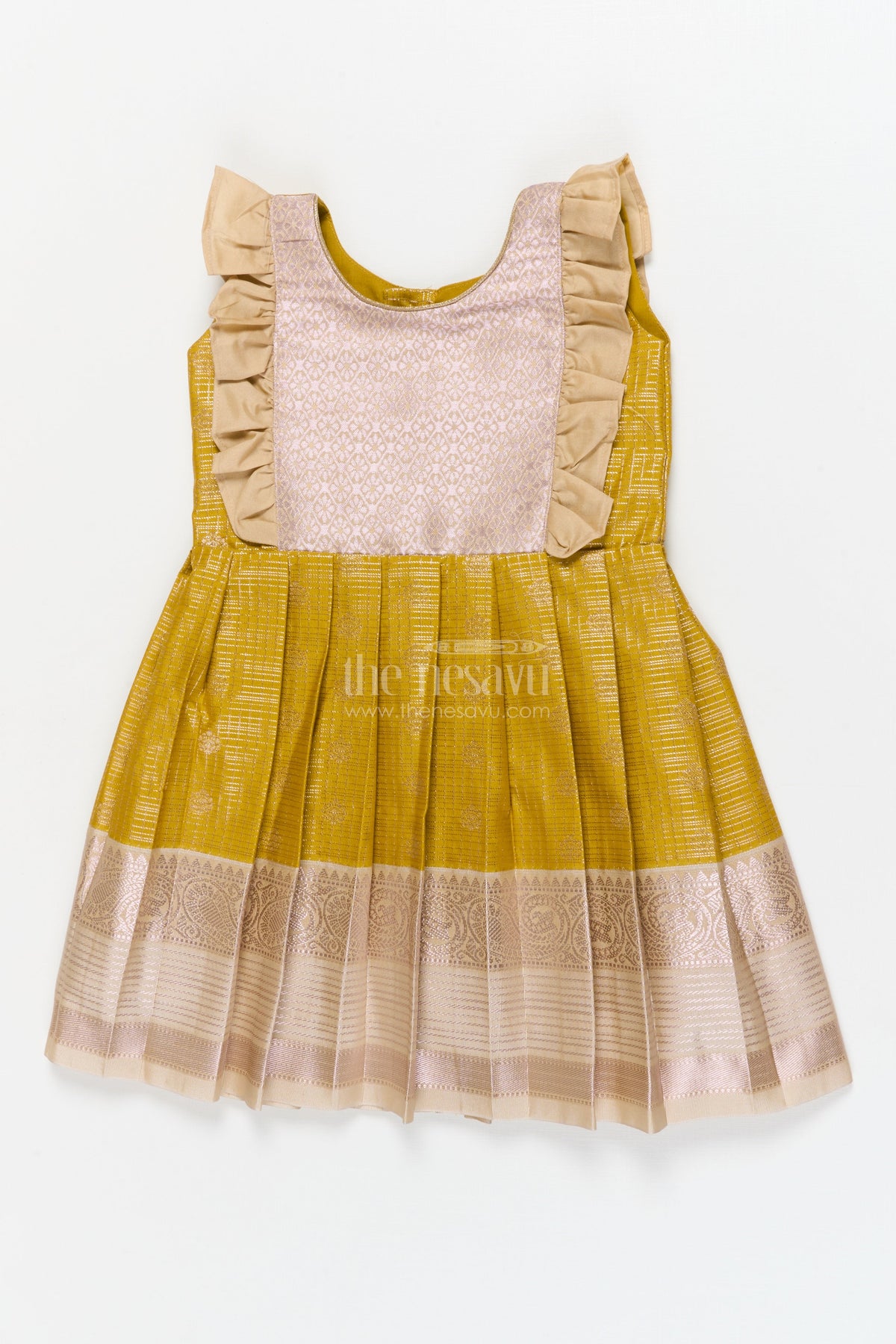 - This toddler girl Kanchi silk frock is perfect for weddings, poojas, and festive family occasions