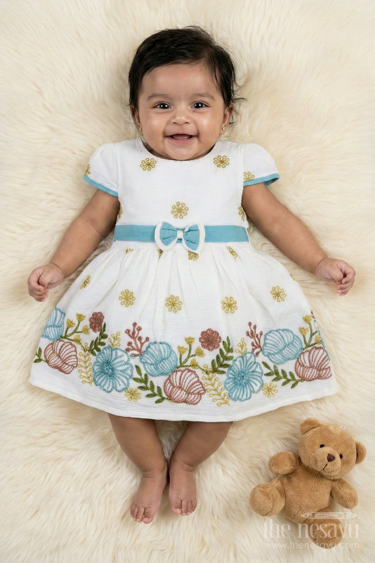 Baby Girl Frock with Thread Embroidery for Festive Daywear