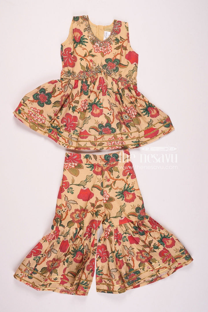 The Nesavu Girls Sharara / Plazo Set Nesavu Modal Silk Printed Sharara Dress for Girls Ganesh Chaturthi Festive Wear Nesavu 16 (1Y) / Cream GPS307A-16 Modal Silk Sharara Dress for Girls Ganesh Chaturthi Festive Wear | The Nesavu