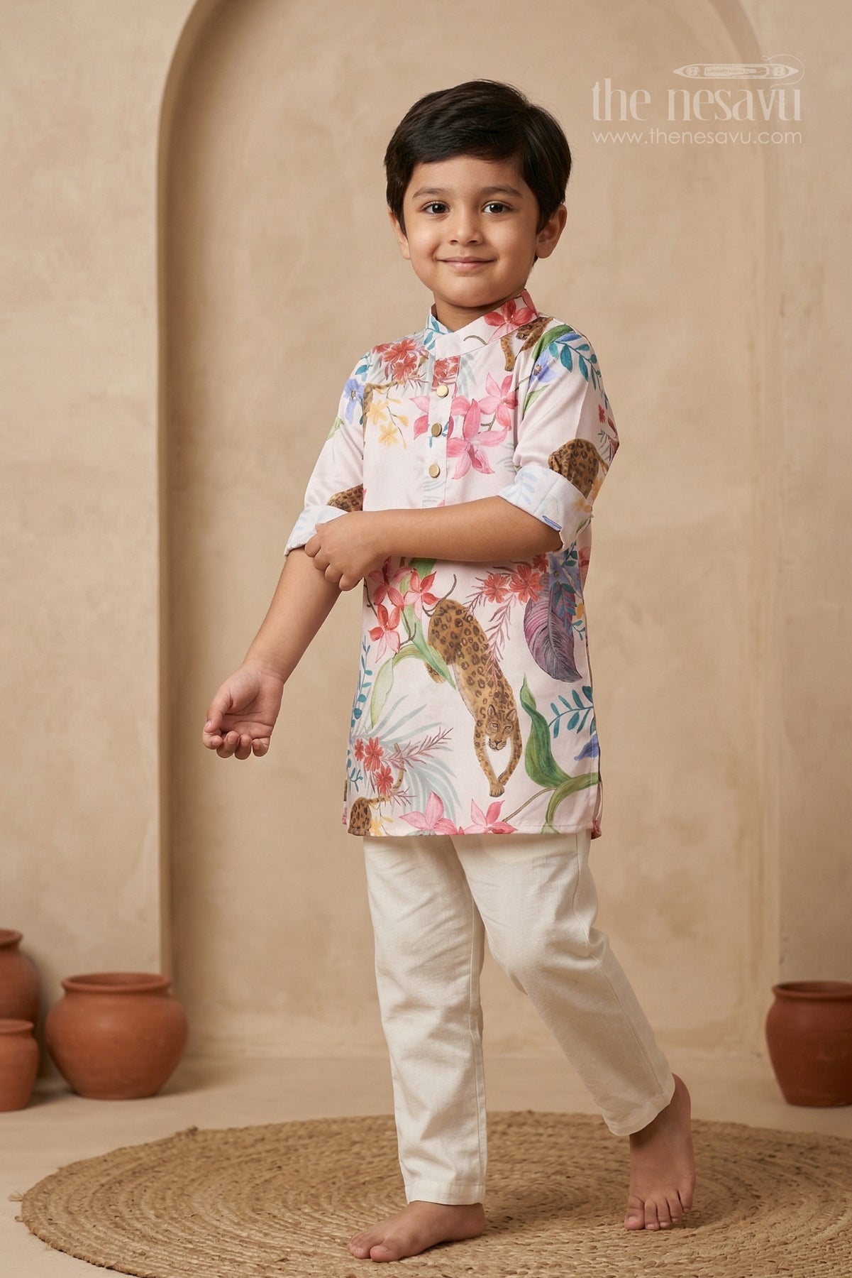 - This boys kurta set for festive occasions and family celebrations combines traditional style with playful modern prints
