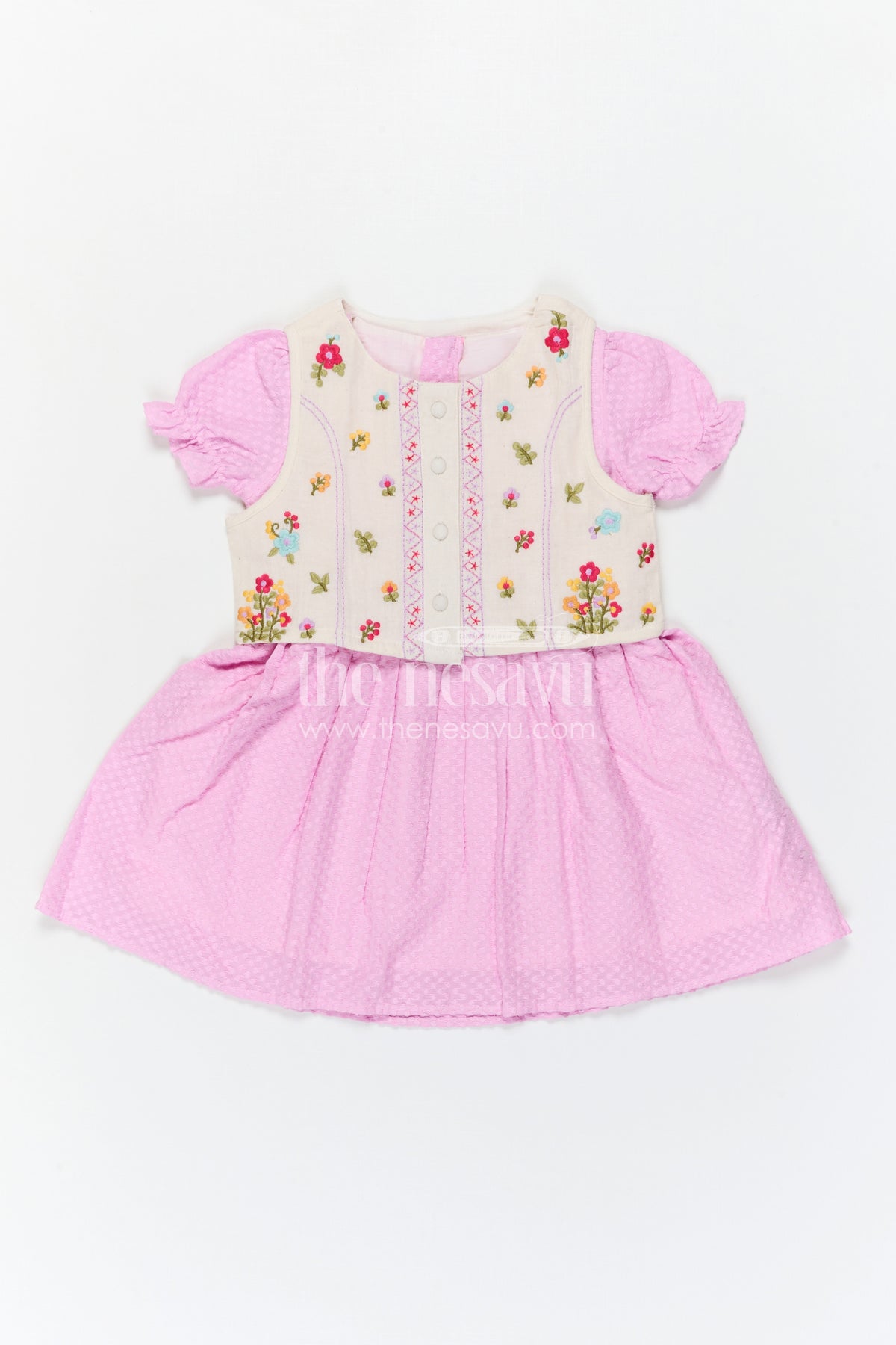 The Nesavu Girls Cotton Frock Baby Girl Outfit with Jacket for Festive Occasions and Outings Nesavu Nesavu Baby Girl Outfit With Embroidered Jacket For Festive Occasions And Stylish Comfortable Wear