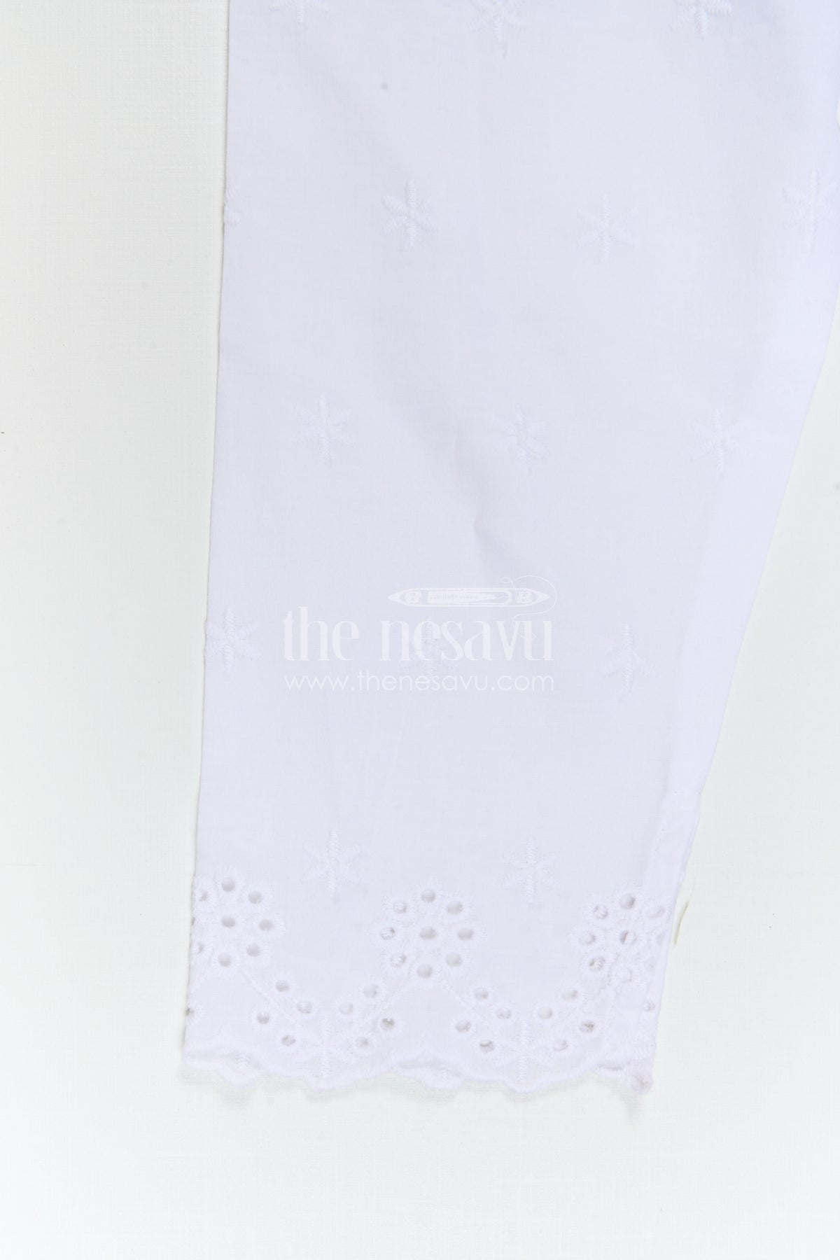 - This girls churidar set for festive occasions is crafted from soft crepe cotton with delicate thread embroidery