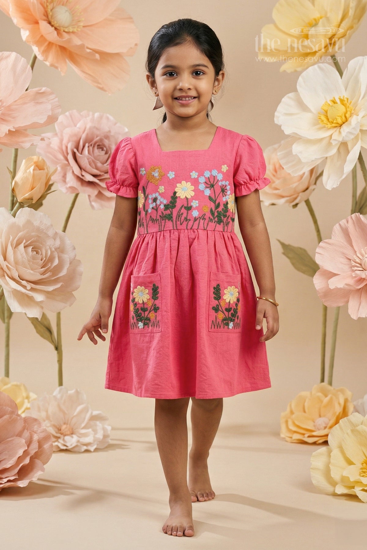 The Nesavu Girls Cotton Frock Girls Cotton Frock for Birthday Celebrations and Playful Outings Nesavu Nesavu Girls Cotton Embroidered Frock For Birthday Parties And Playful Summer Outings