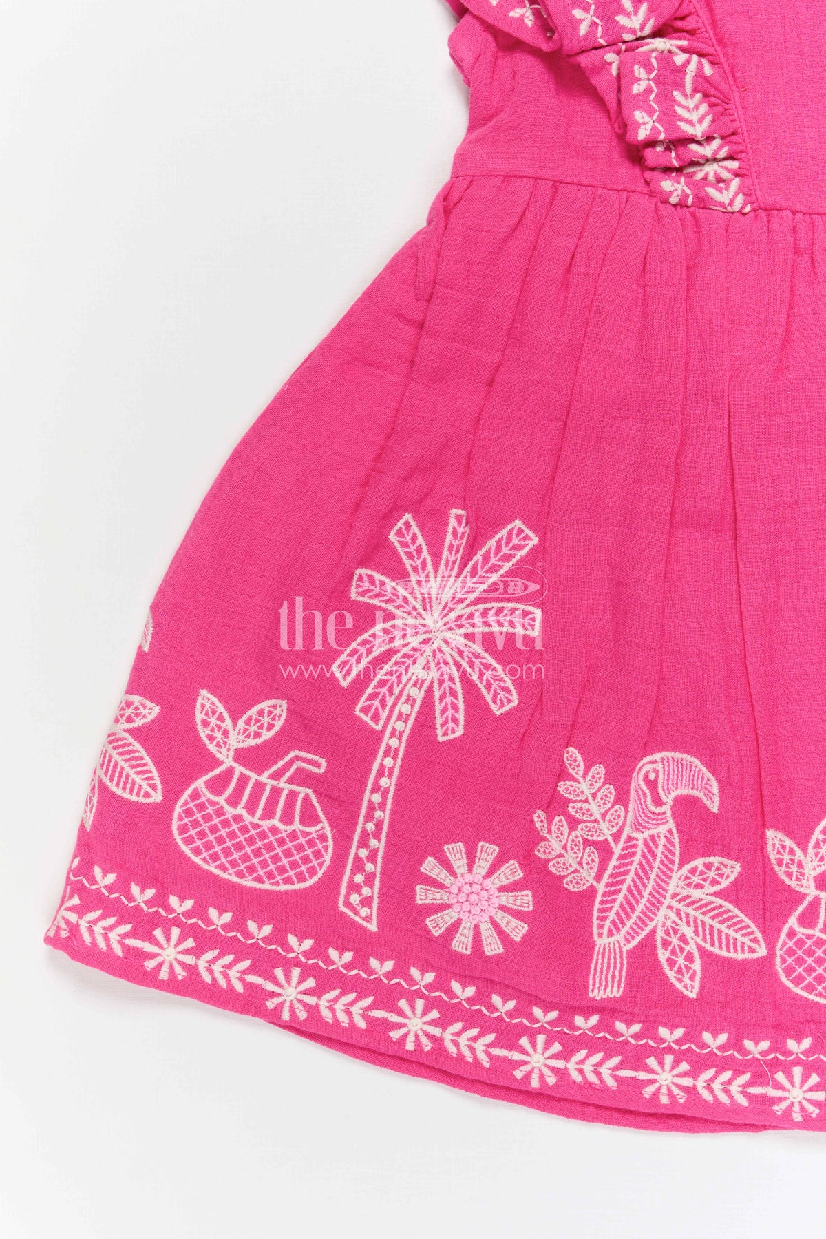 - This girls muslin cotton embroidered frock for festive celebrations combines playful charm with elegant detailing