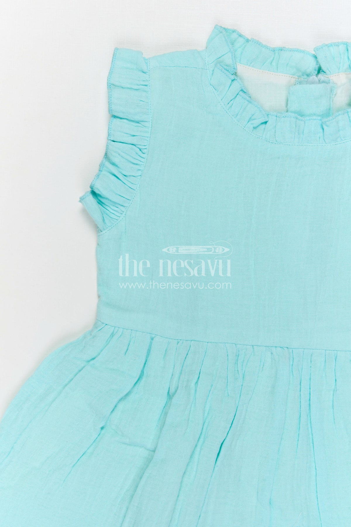 The Nesavu Girls Cotton Frock Girls Muslin Cotton Frock with Embroidered Jacket for Festive Outings and Special Occasions Nesavu 20 (3Y) / Turquoise / Muslin Cotton GFC2157B-20 Nesavu Girls Muslin Cotton Frock With Embroidered Jacket For Festive Celebrations