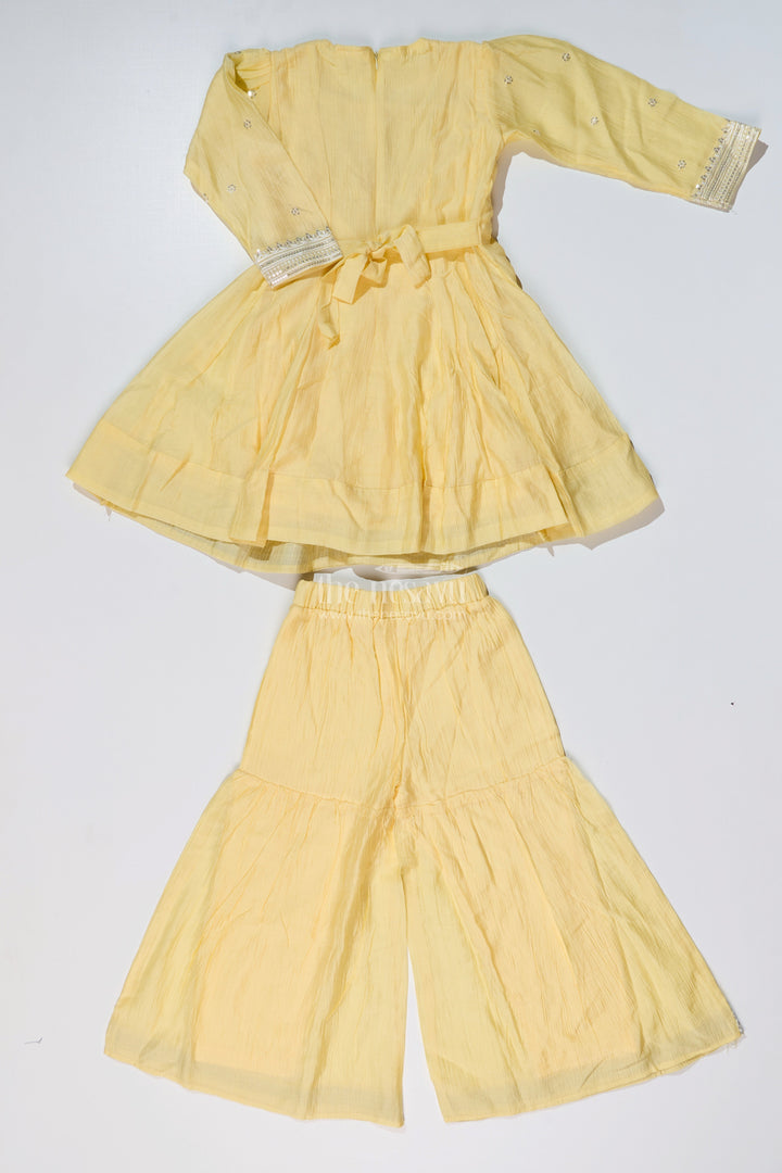 Girls Yellow Cotton Sharara Set with Silver Borders and Flared Sleeves for a Bright Simple Sharara Suit Look