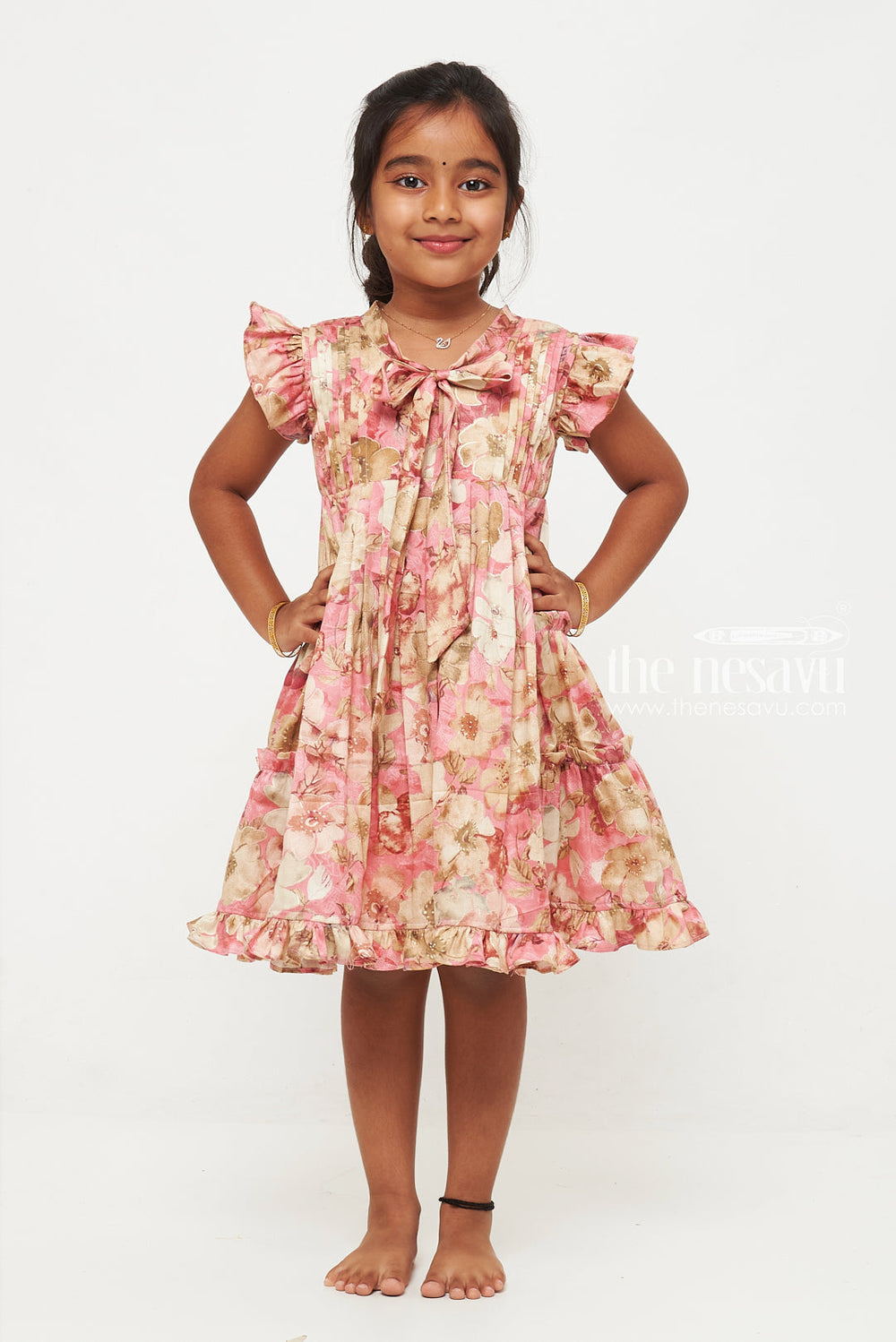 Pink Floral Girls' Cotton Summer Dress with Flutter Sleeves