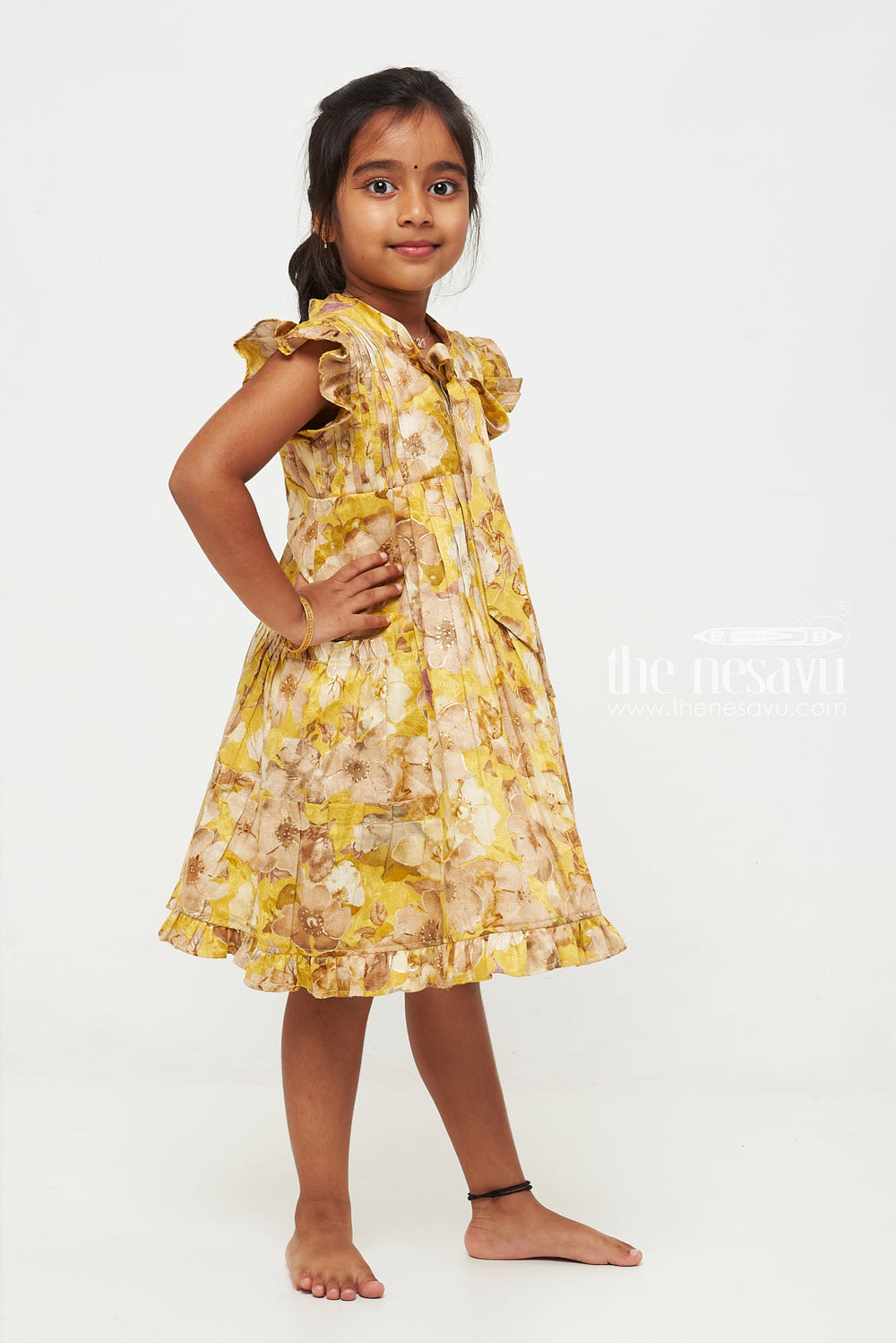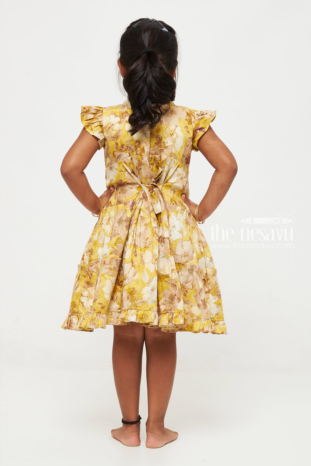 Yellow Floral Girls' Cotton Summer Dress with Flutter Sleeves