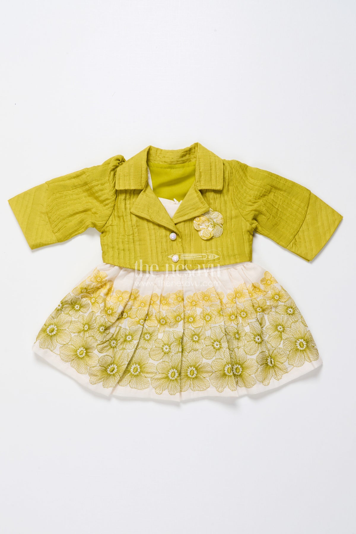 The Nesavu Baby Fancy Frock Hand-Embroidered Cotton Frock for Baby Girls with Soft Pastel Finish Nesavu Nesavu green cotton baby girl frock embroidery  festive traditional outfit