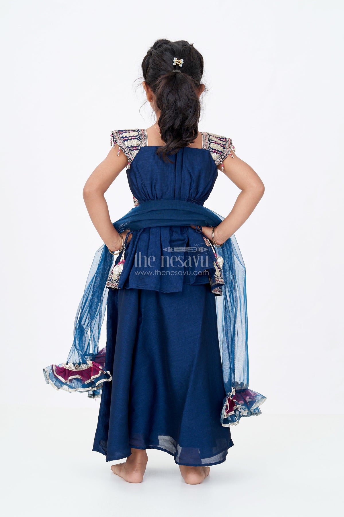 Sleeveless suit set made for girls who love to sparkle! This stunning blue Georgette outfit features a richly embroidered top with intricate sequin and thread work, complemented by coordinating flared palazzo pants and a matching dupatta. The sleeveless cut offers both style and ease of movement, while the luxurious Georgette fabric adds a graceful drape and lightweight feel. The set is further elevated by traditional motifs and glimmering embellishments that bring festive energy to any occasion. Designed for elegance and comfort, this is the perfect pick for ethnic celebrations or family gatherings.