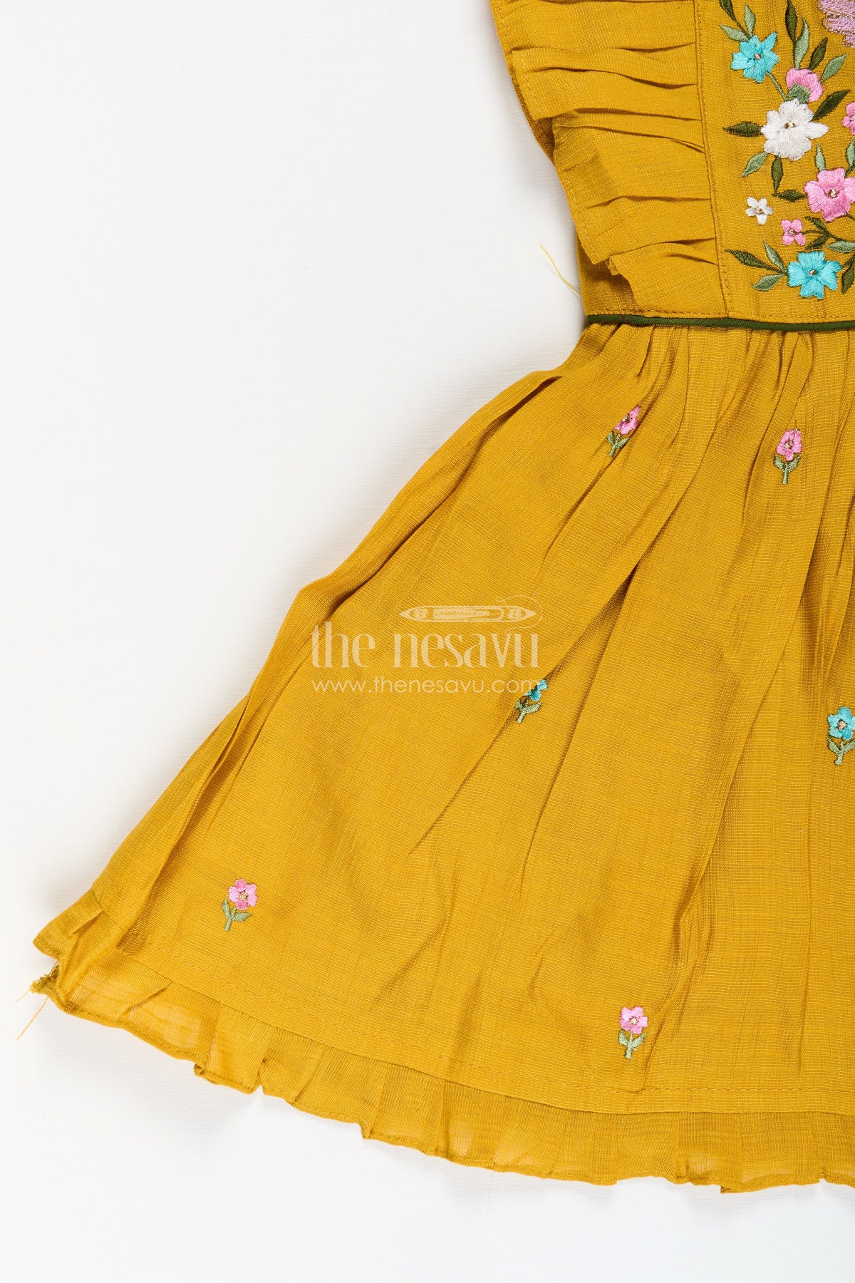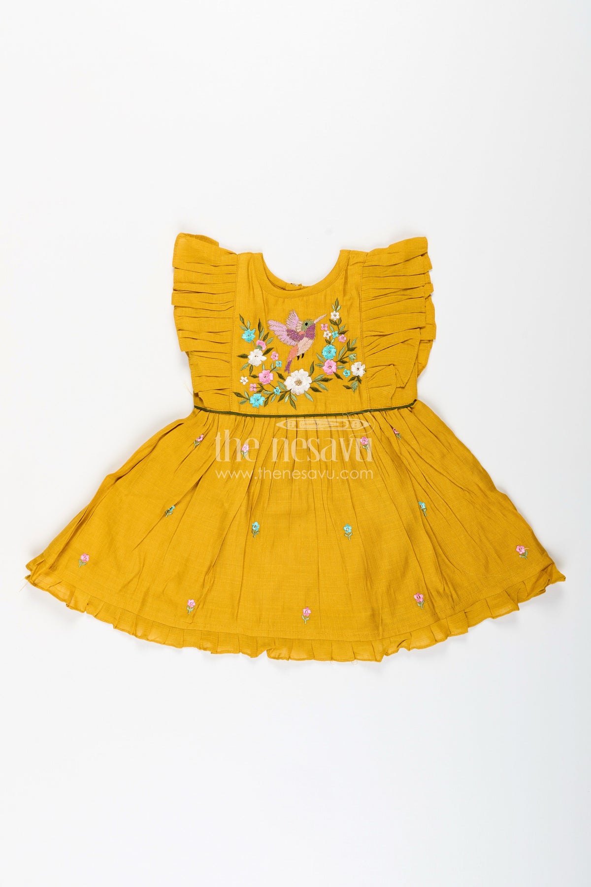 The Nesavu Girls Chanderi Frock Baby girl festive frock with bird embroidery for functions and parties Nesavu 16 (1Y) / Yellow GFC1938A-16 Nesavu baby girl festive frock bird floral embroidery birthdays ethnic events