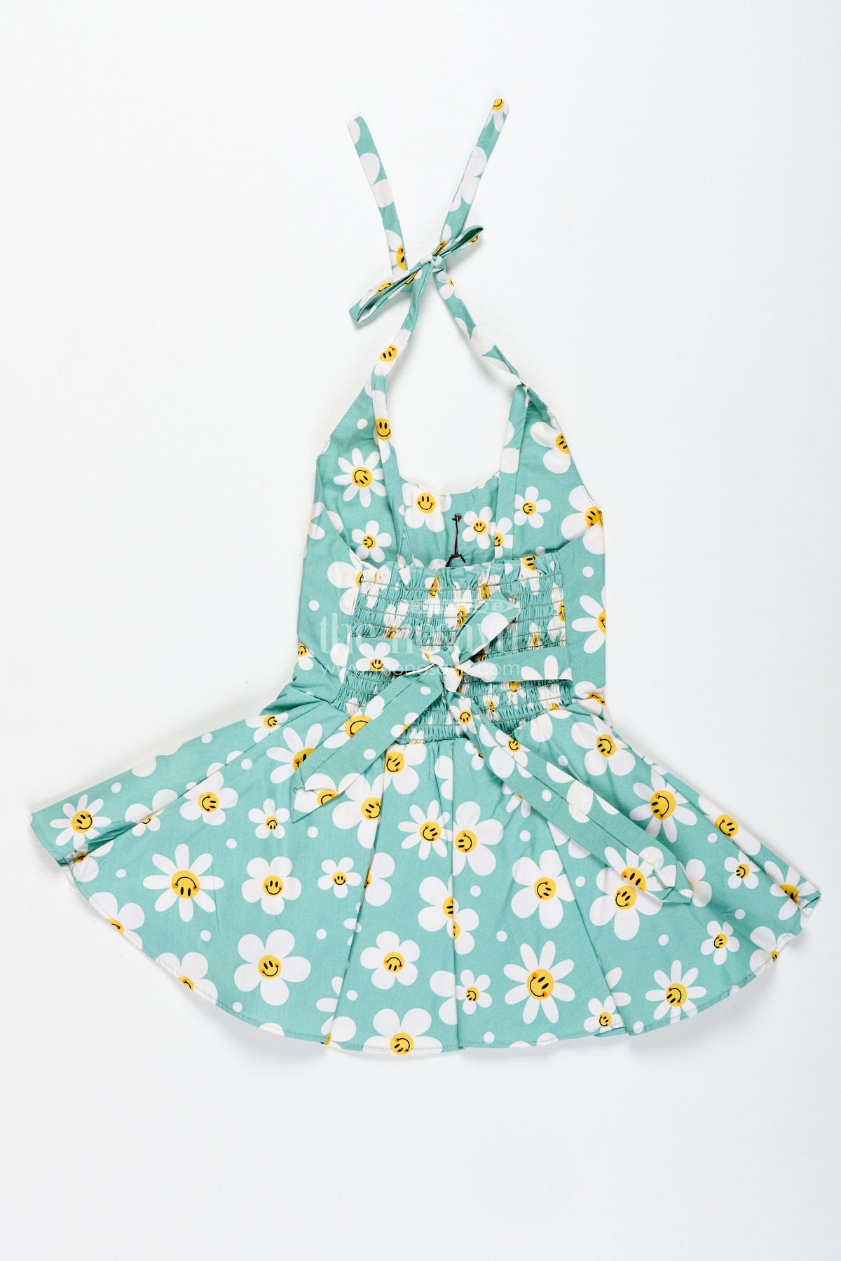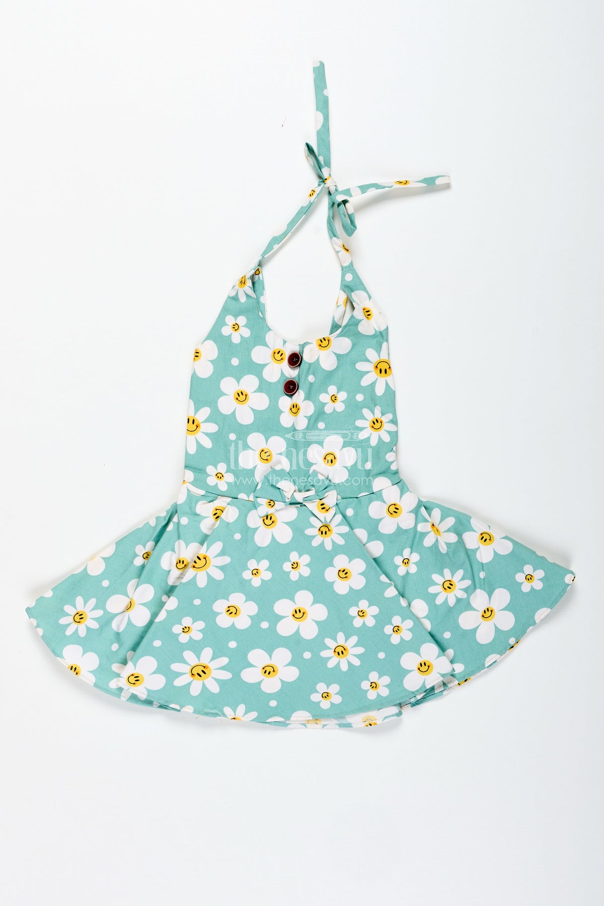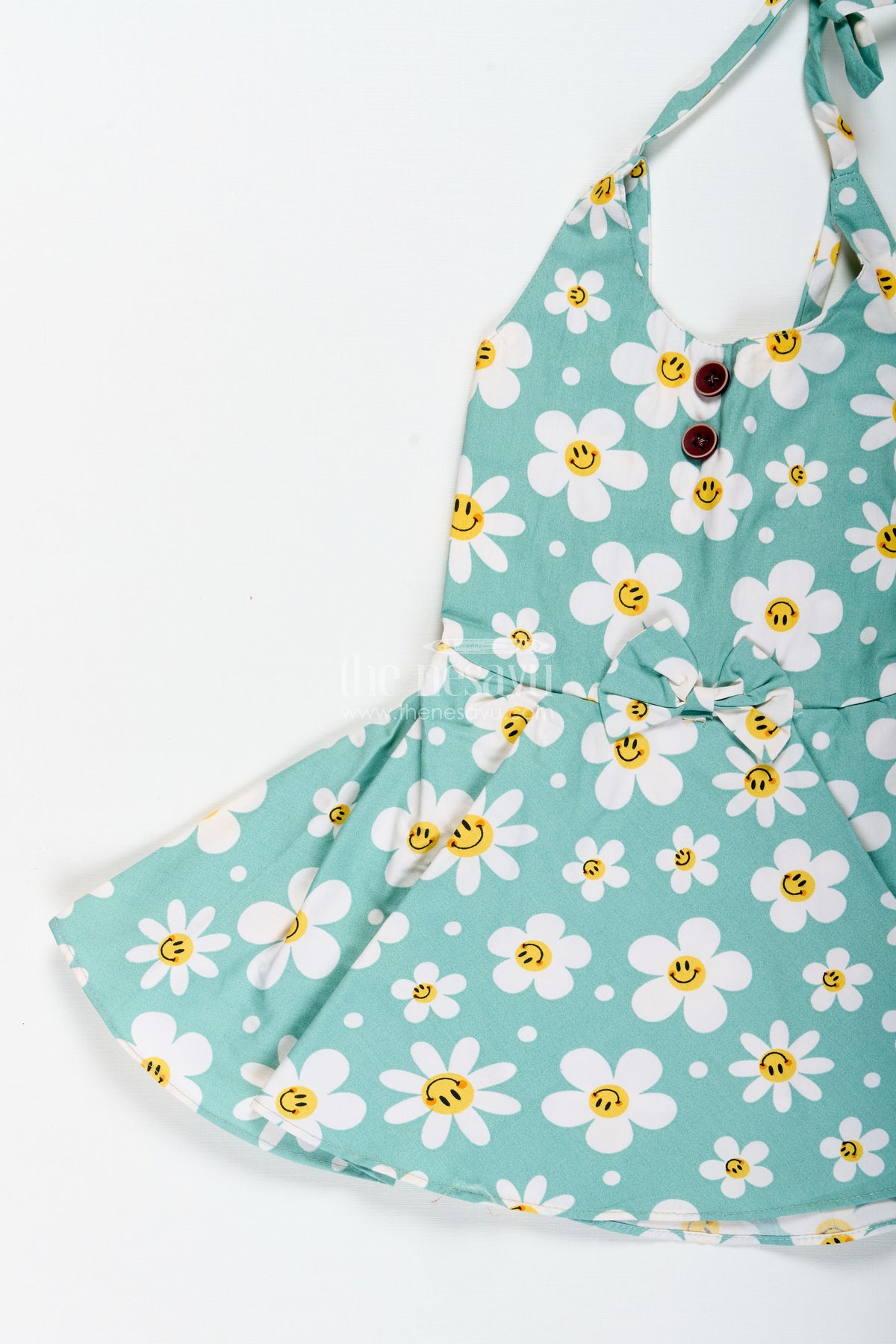 • Cotton frock featuring white daisies with cute yellow smiley faces
