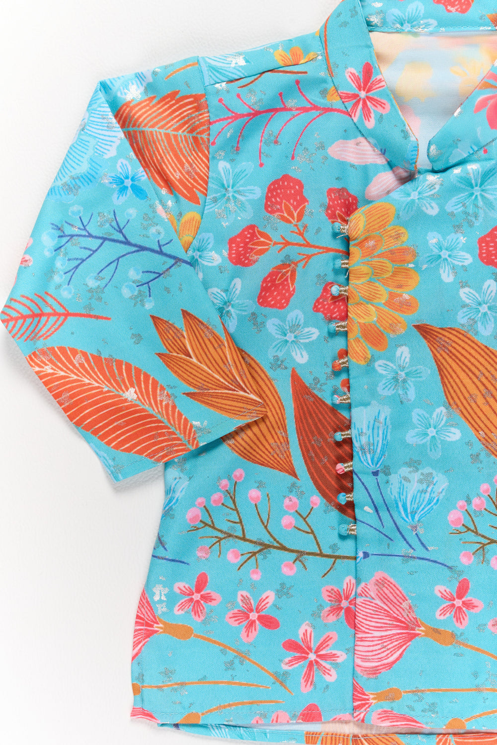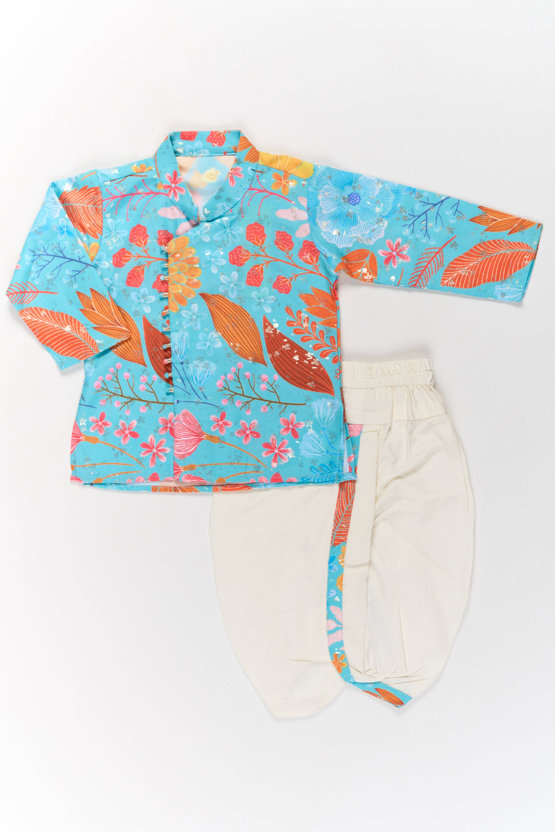 Boys Aqua Dothi Dress for Kids with Floral Cotton Blended Kurtha