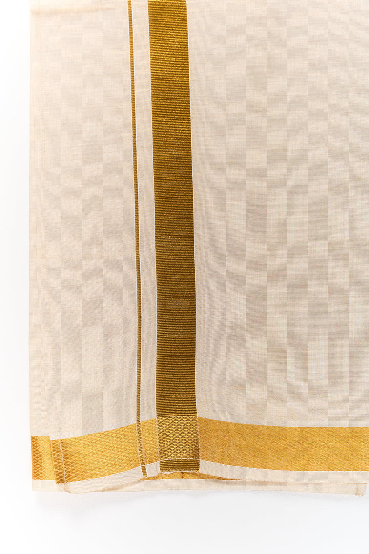 This elegant traditional costume for boys is designed to showcase cultural heritage with a modern touch. Made from premium silk, this vesti features a timeless beige base with a radiant gold zari border, making it a standout piece for special occasions such as temple visits, cultural events, or festive celebrations. The lightweight silk material offers breathability and comfort, ensuring your child stays relaxed throughout the day. Its versatile design pairs seamlessly with a traditional shirt or kurta, creating a sophisticated look for your little one.