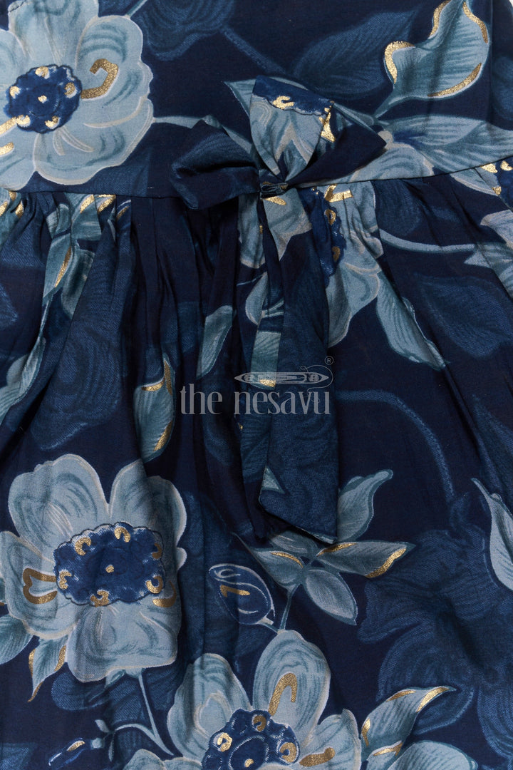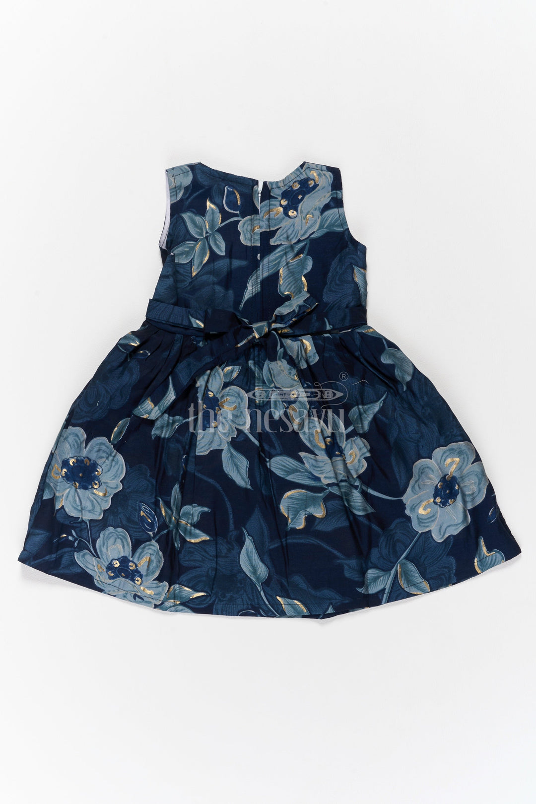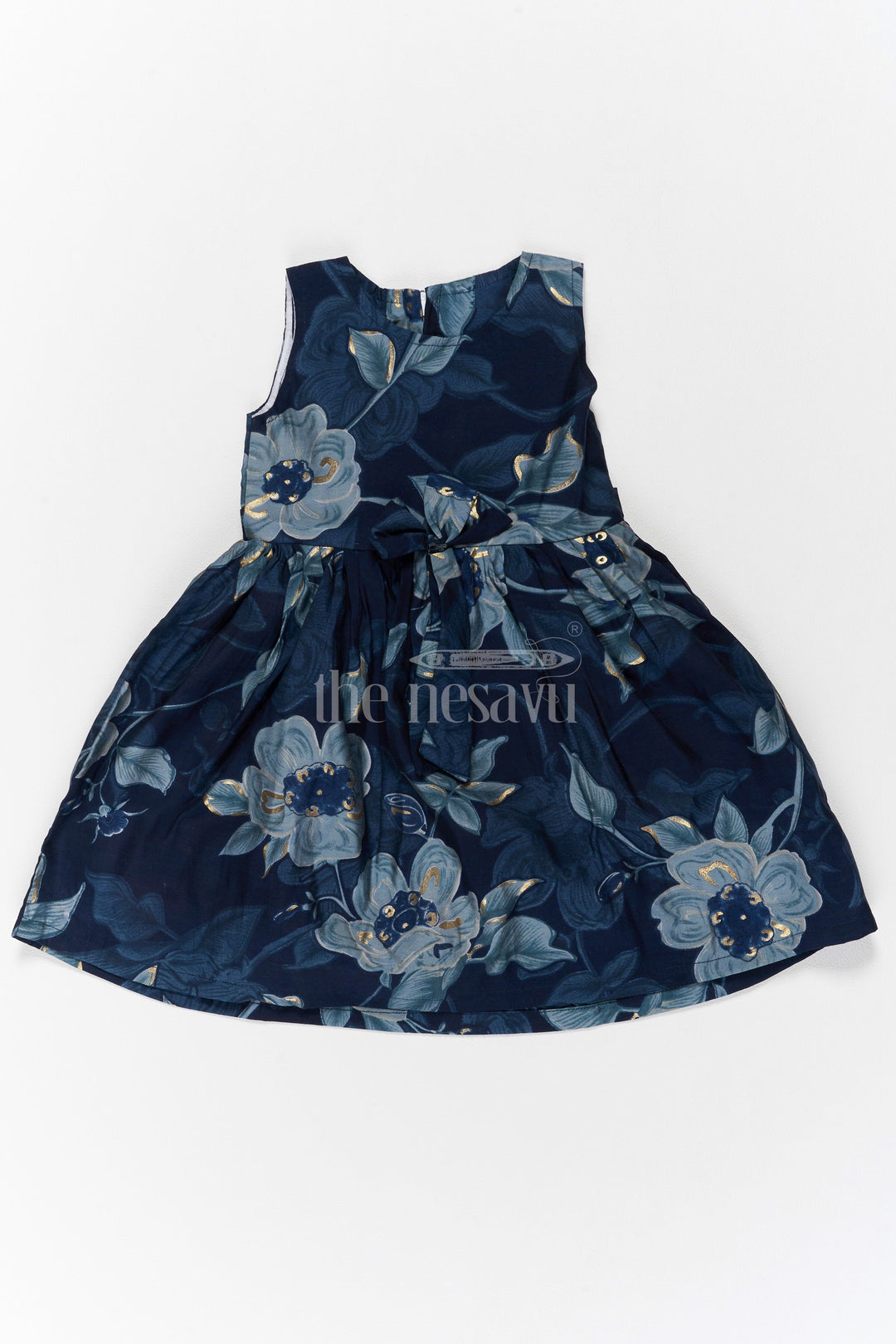 Simple Cotton Frocks for Baby Girl in Navy Blue Floral Prints