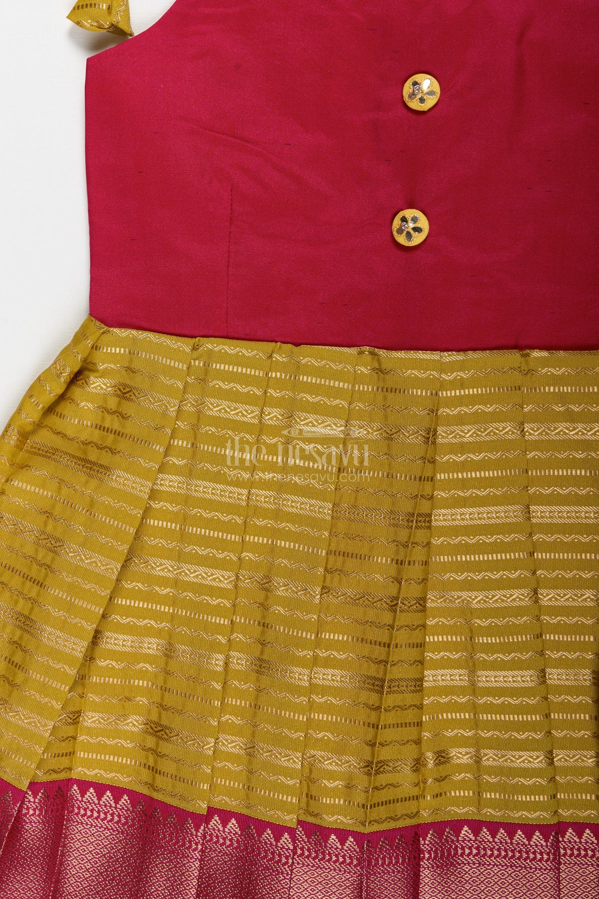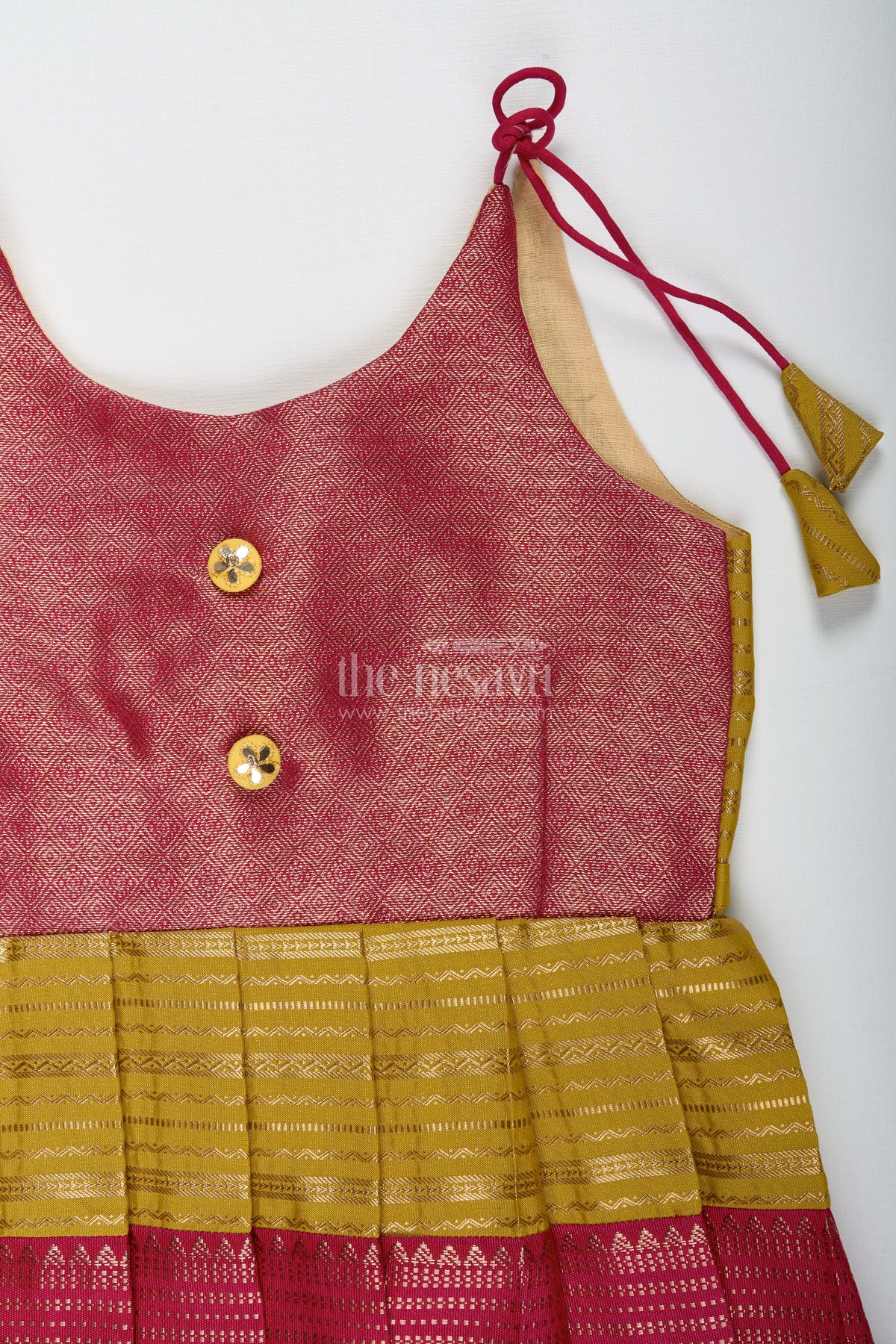 The Nesavu Tie-up Frock Traditional Tie-Up Frock for Baby Girls in Mustard and Pink Perfect for Weddings Nesavu 16 (1Y) / Red / Style 2 SF994CB-16 Nesavu Mustard And Pink Baby Girl Silk Frock Ethnic Tie-Up Dress For Weddings
