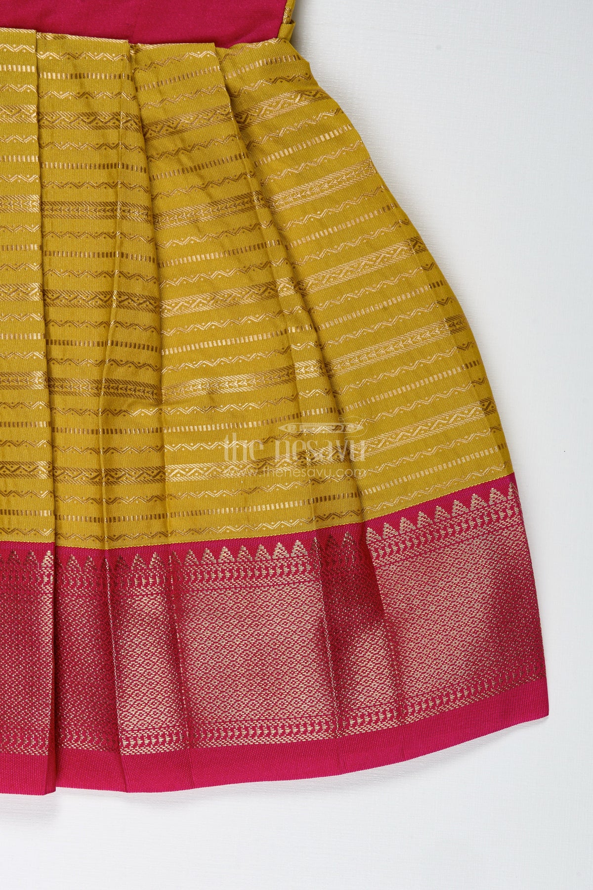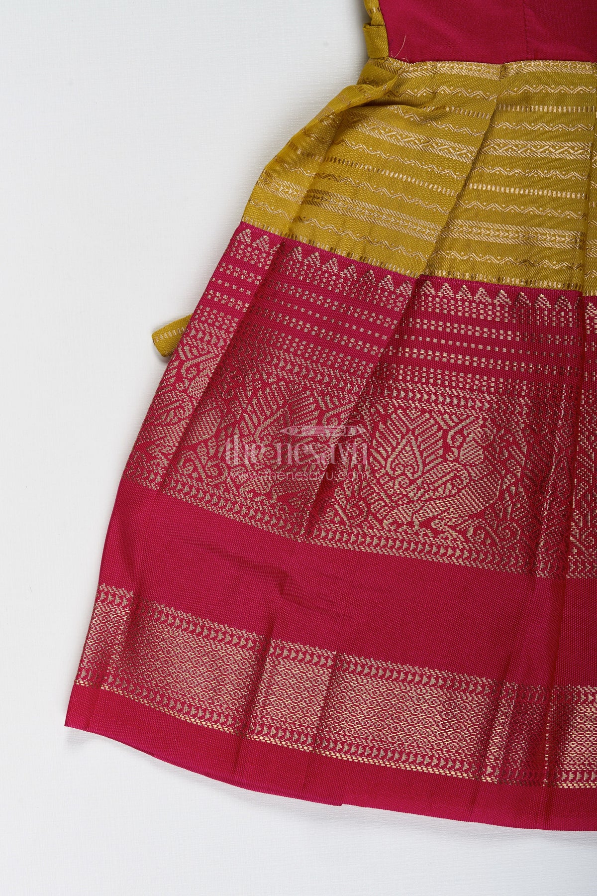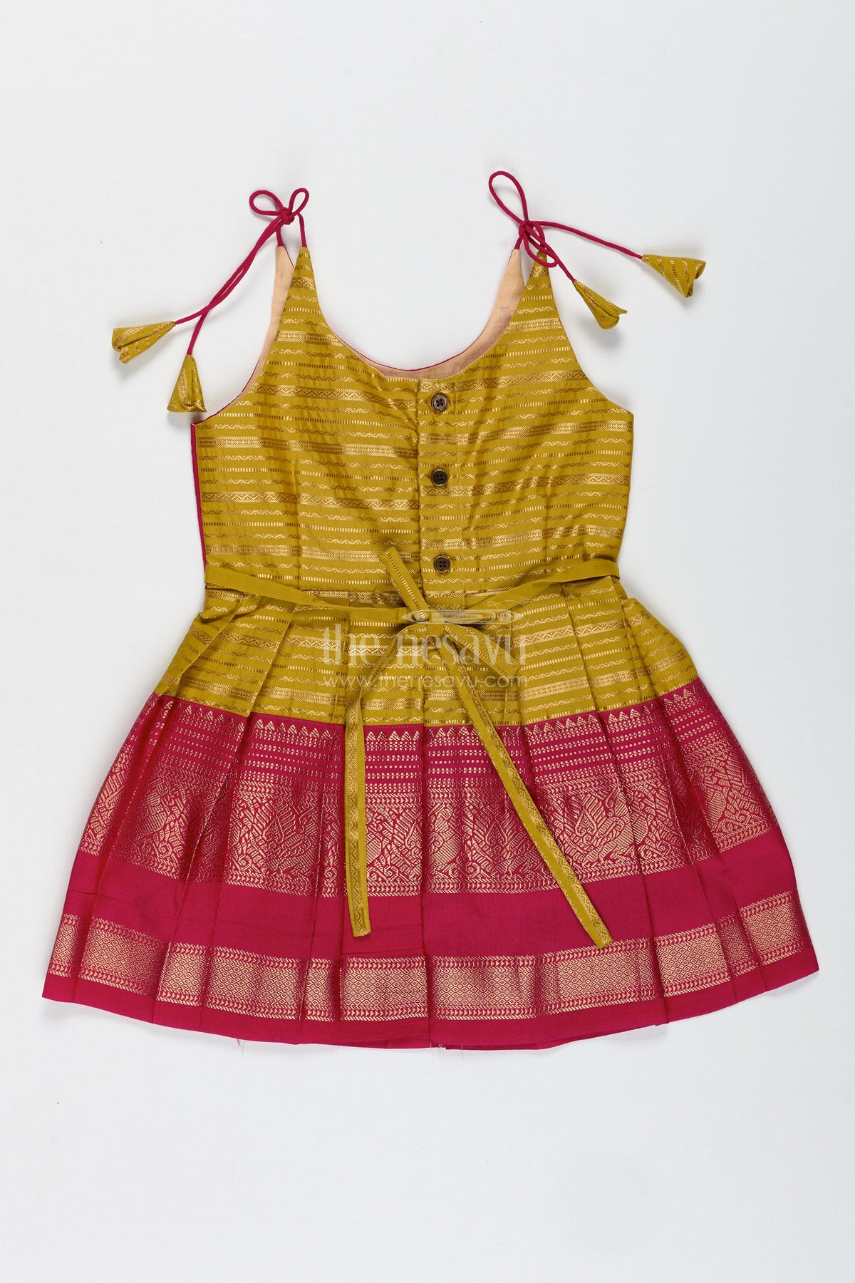 The Nesavu Tie-up Frock Traditional Tie-Up Frock for Baby Girls in Mustard and Pink Perfect for Weddings Nesavu Nesavu Mustard And Pink Baby Girl Silk Frock Ethnic Tie-Up Dress For Weddings