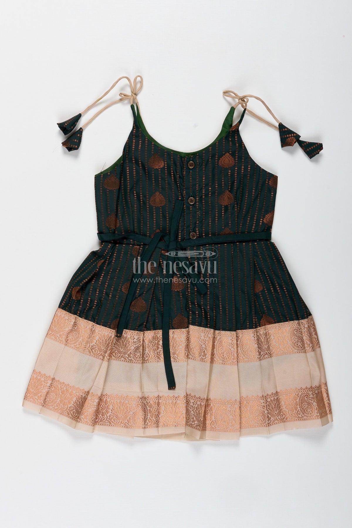 The Nesavu Tie-up Frock Baby Girl Tie-Up Frock in Silk for Birthdays and Ethnic Functions Nesavu Nesavu Baby Girl Frock In Semi Silk Ethnic Black And Peach Dress For Birthdays And Family Functions