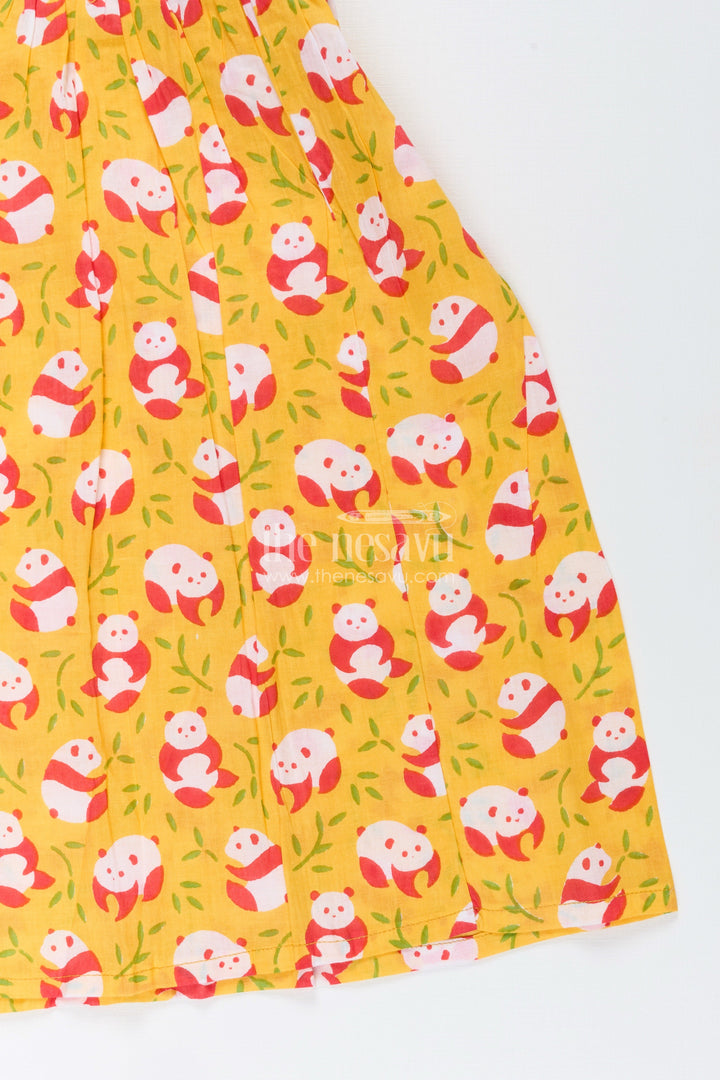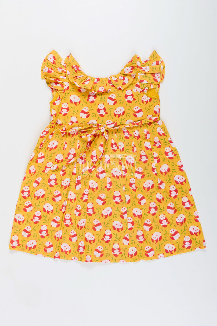 The Nesavu Girls Cotton Frock Animal print frock for toddler girls ideal for birthdays and playdates Nesavu 18 (2Y) / YELLOW GFC1972A-18 Nesavu panda animal print frock toddler girls flutter sleeves parties everyday fun