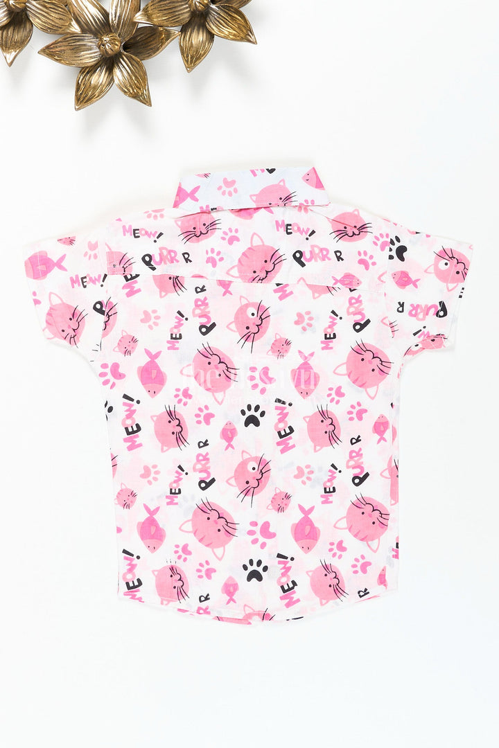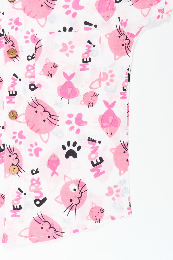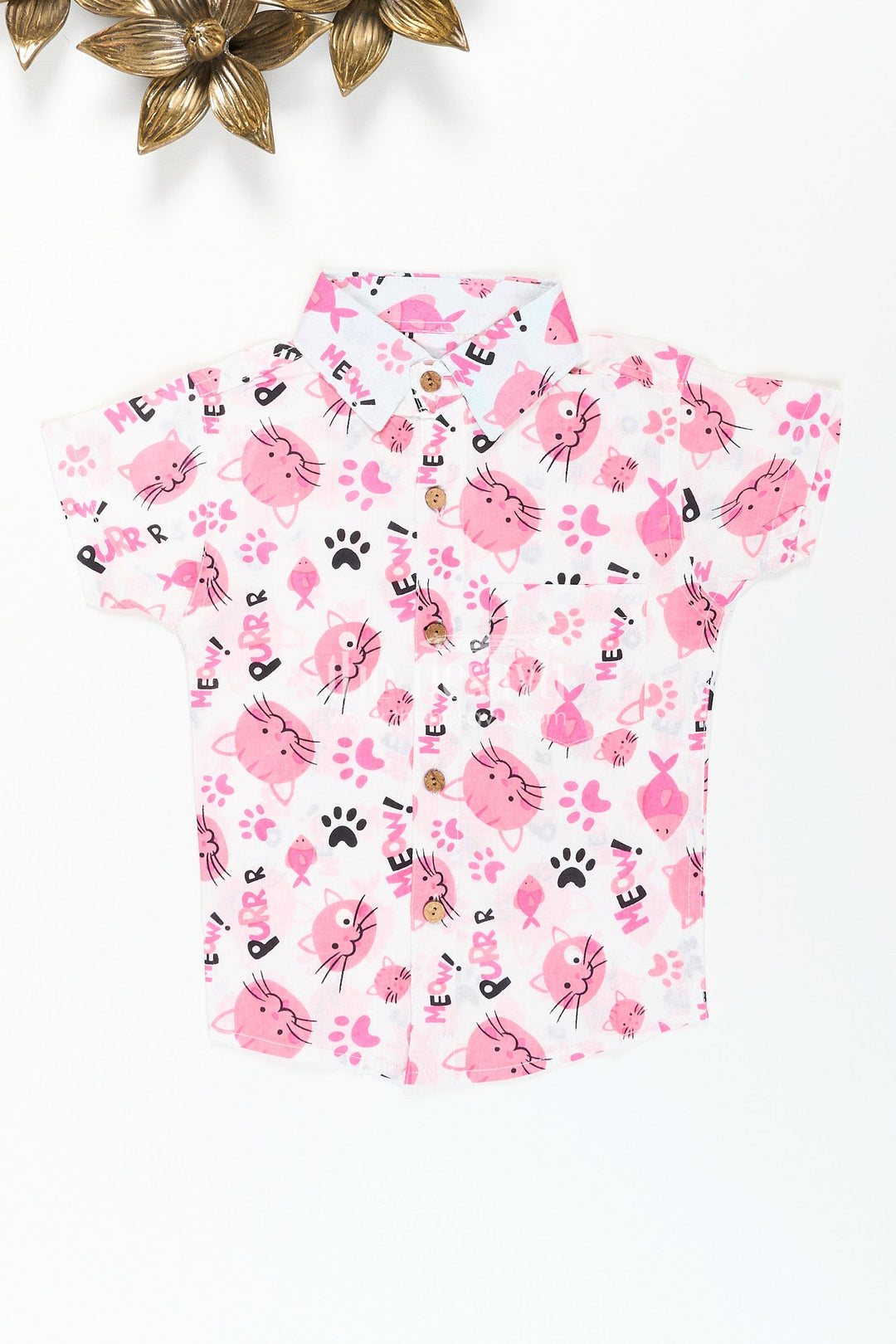 - This boys cotton shirt with pink cat print is all about fun, play, and purr-fect comfort