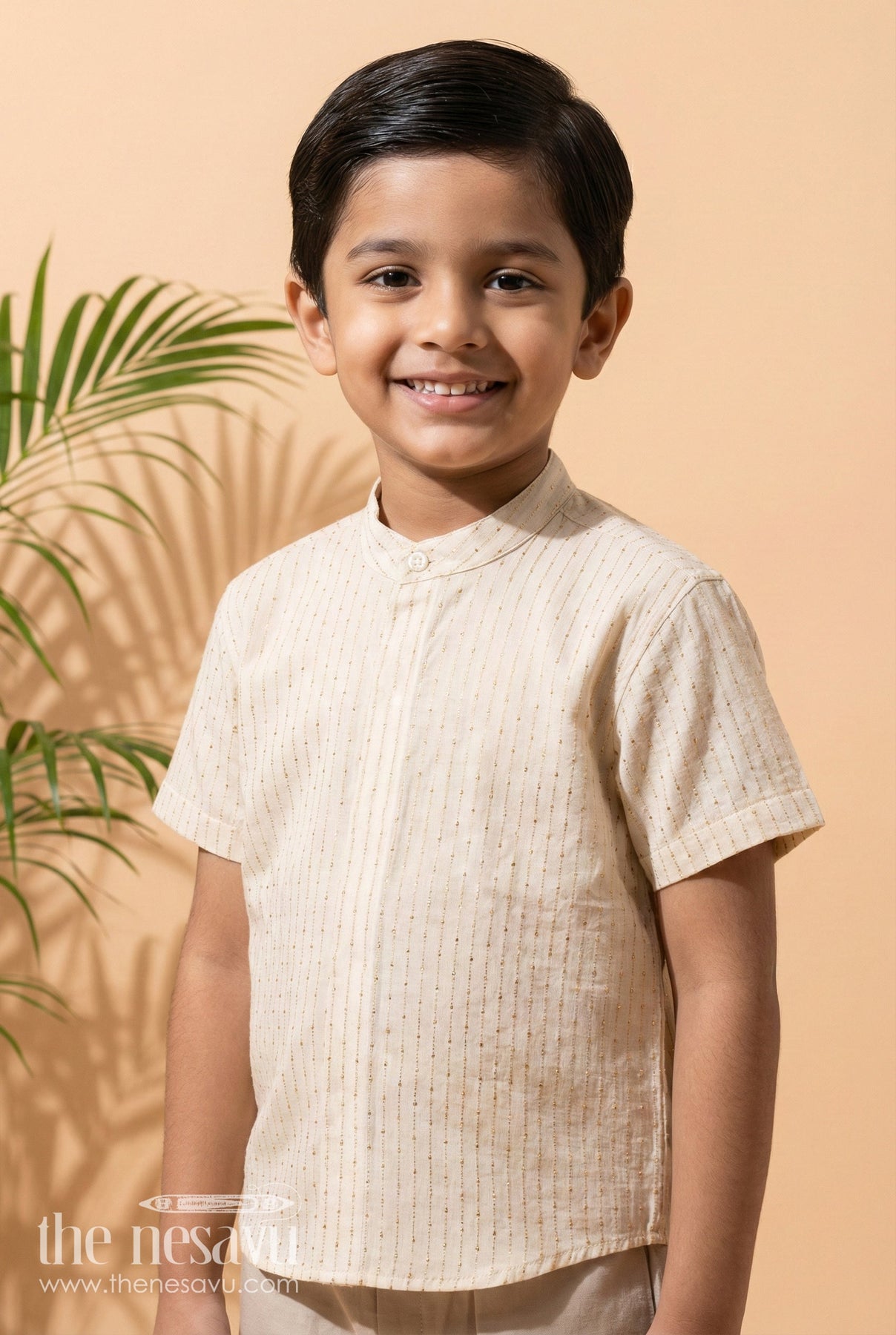 The Nesavu Boys Silk Shirt Boys Silk Shirt for Traditional Functions and Festive Wear Nesavu 16 (1Y) / Cream BS3781A-16 Nesavu boys tissue silk shirt with ethnic design for weddings and traditional occasions