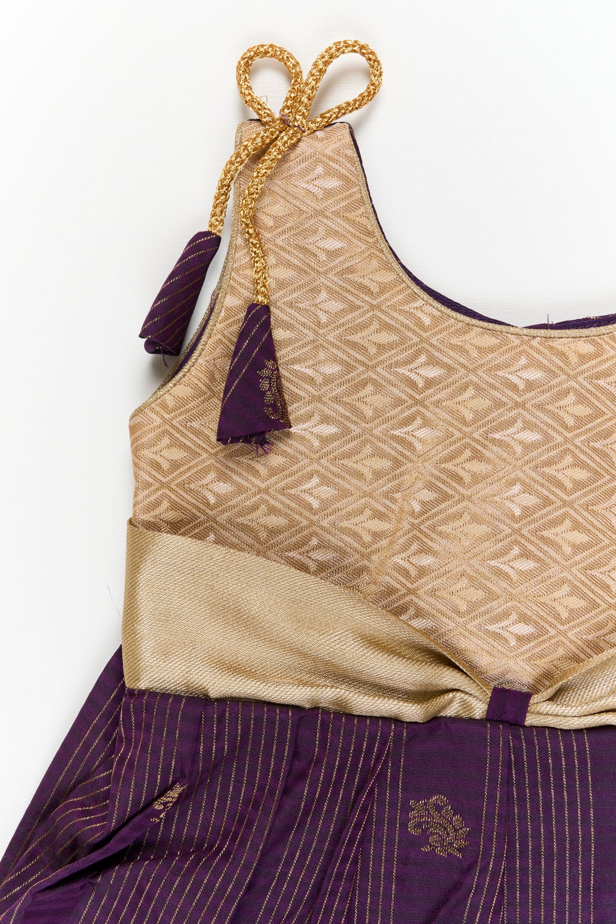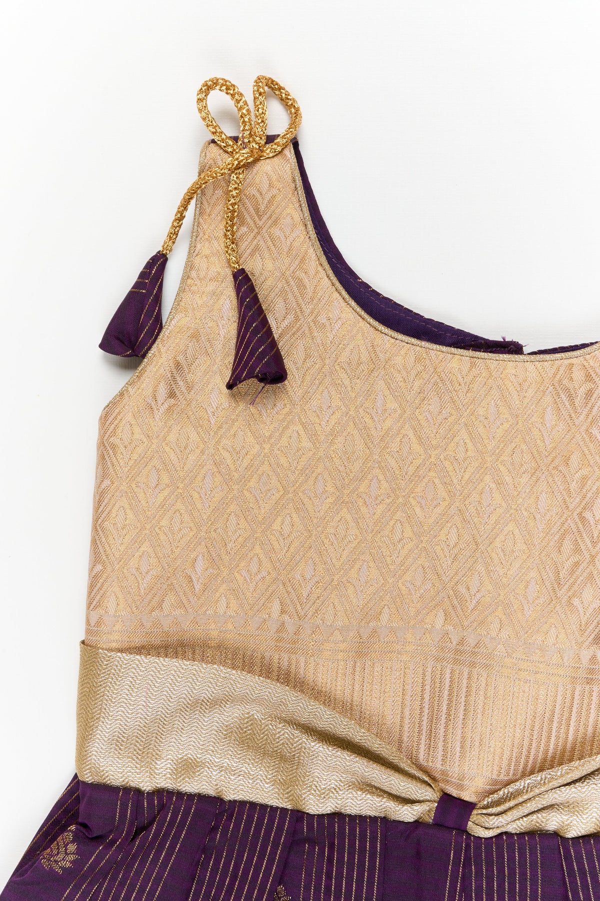Decorative shoulder tie ups with tassel accents add a charming ethnic detail that makes the outfit feel celebration ready