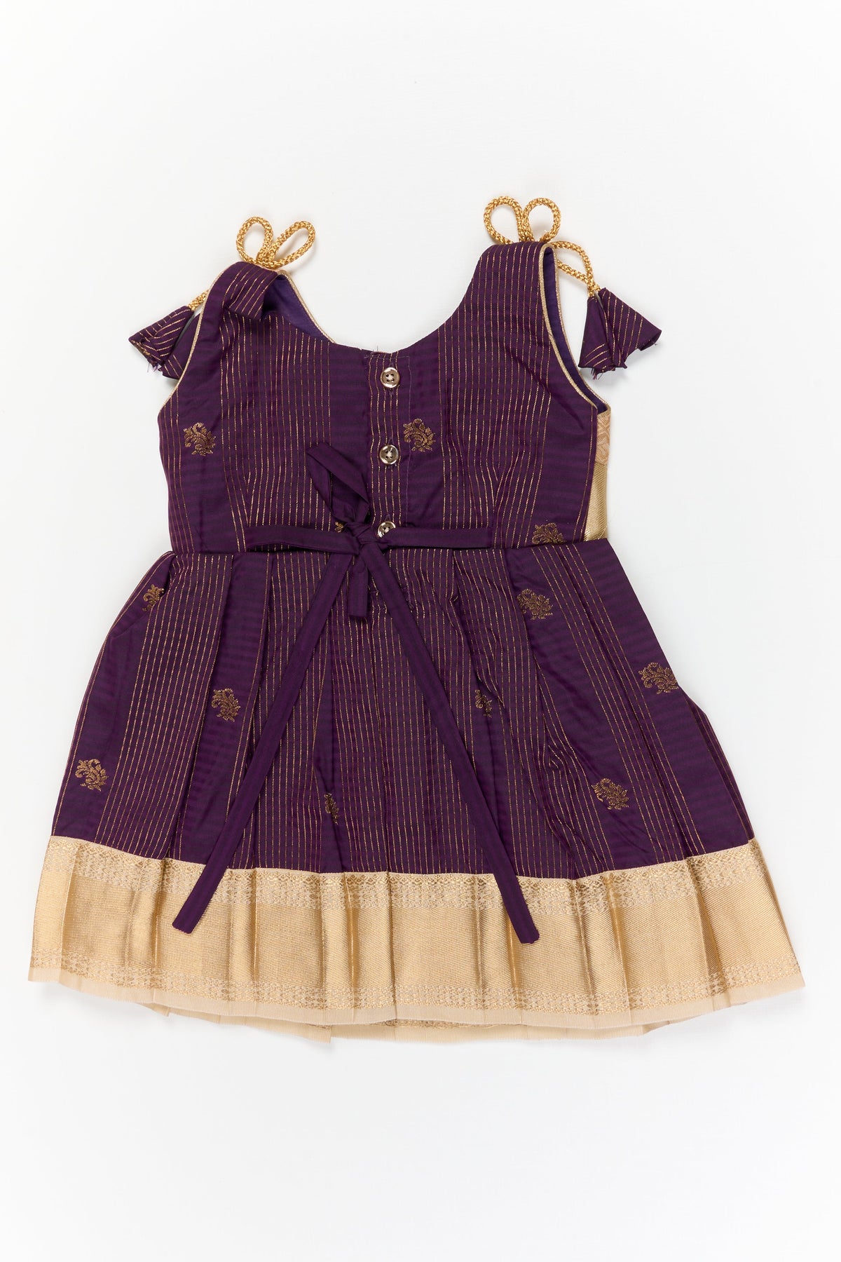 Made from rich kanchivaram inspired silk fabric, it offers a festive shine and structured finish while staying comfortable for children