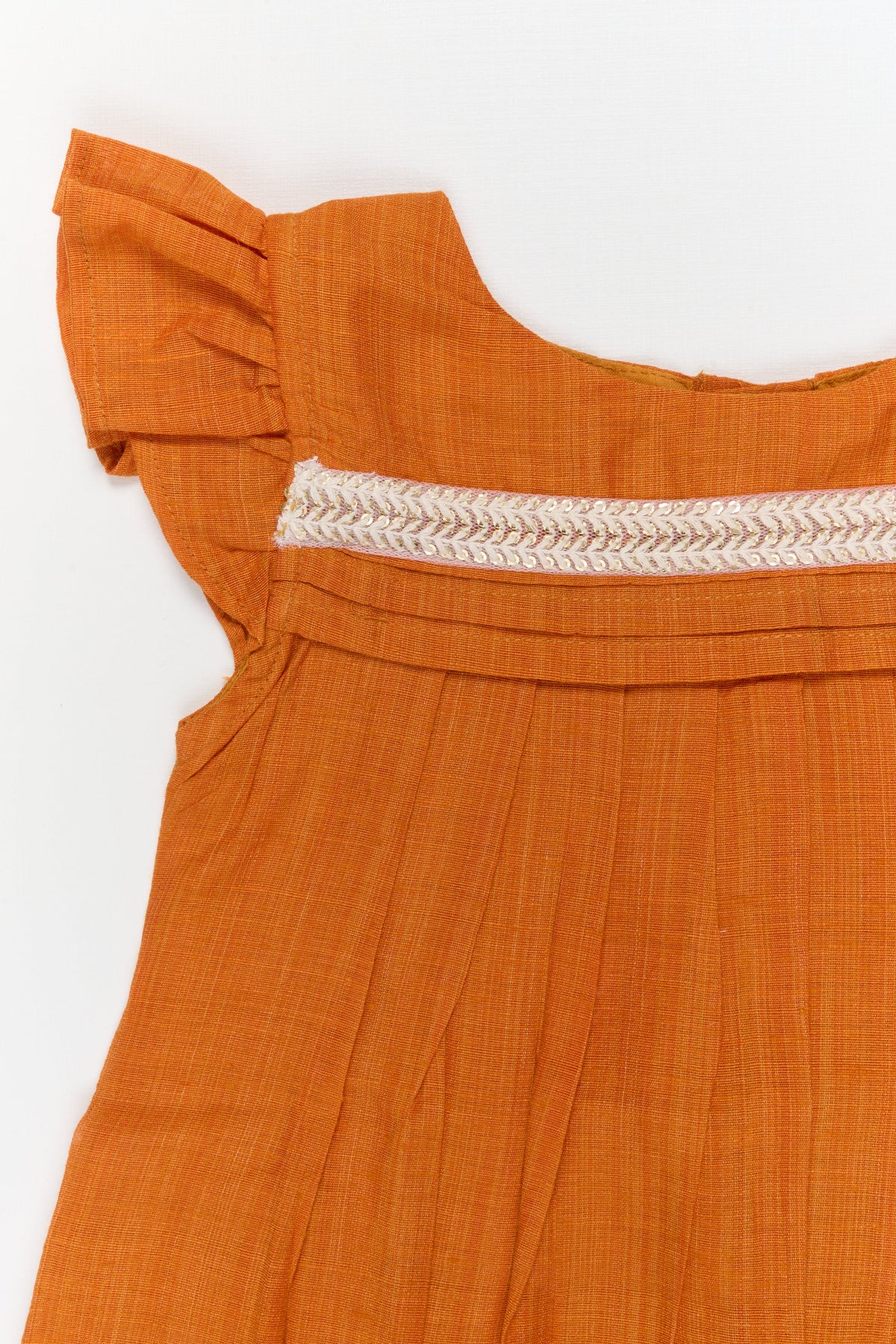 The Nesavu Girls Chanderi Frock Toddler Girl Festive Chanderi Frock with Embroidered Yoke for Casual Functions Nesavu 10 (NB) / Gold / Chanderi GFC2096A-10 Nesavu toddler girl chanderi cotton frock with lace yoke for poojas and traditional daywear