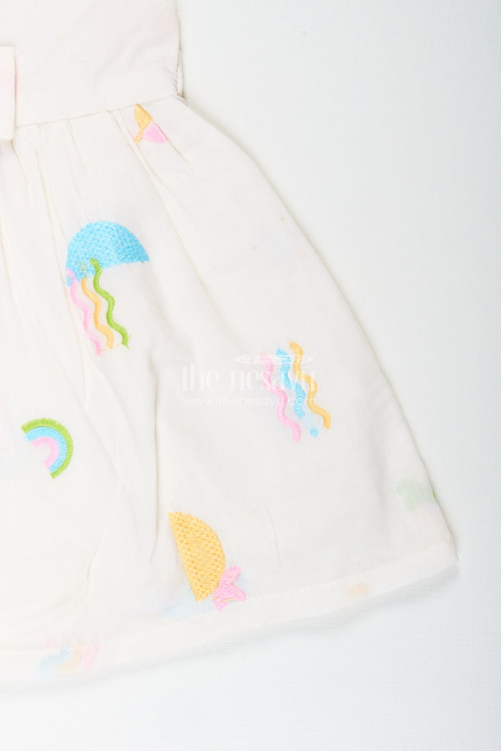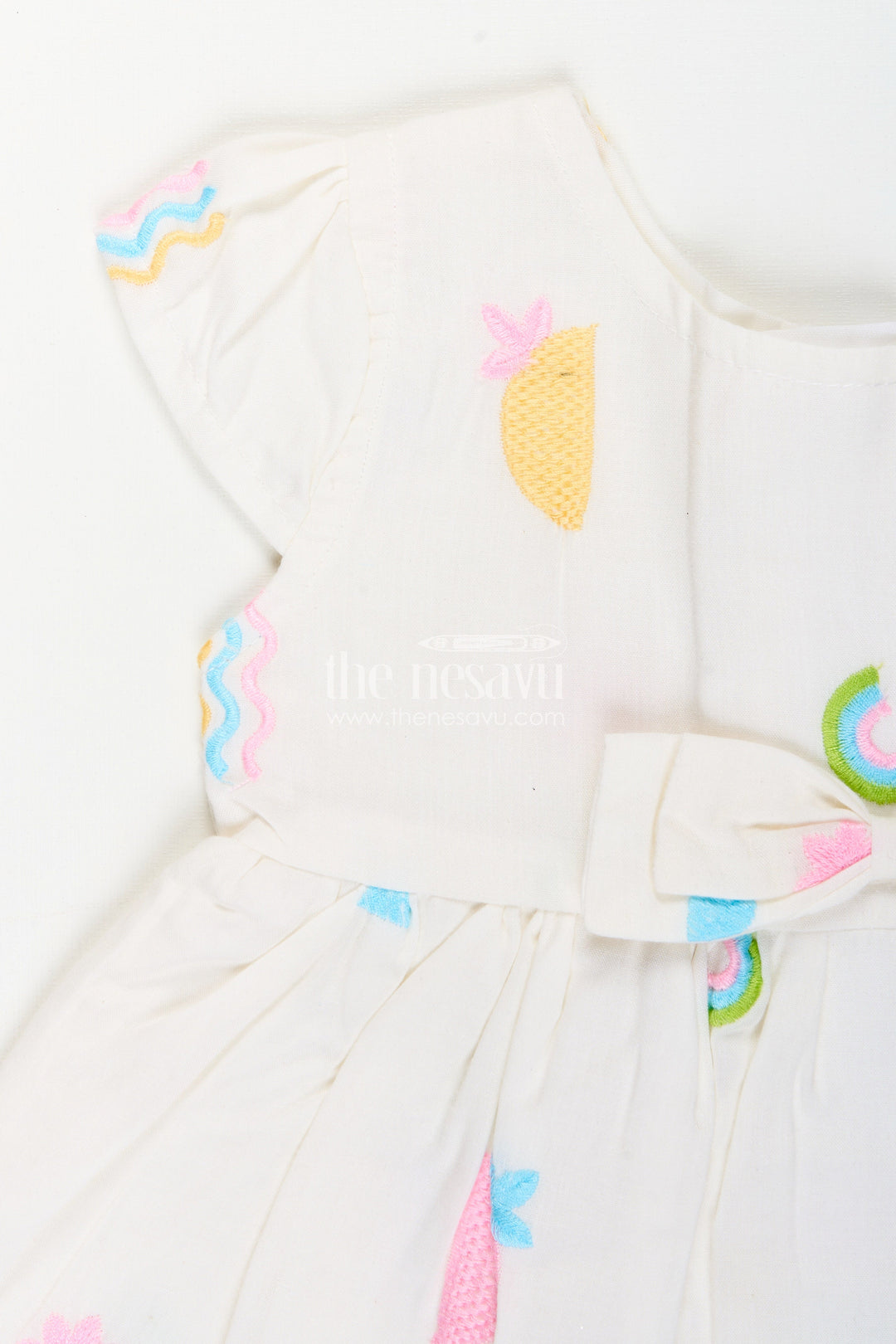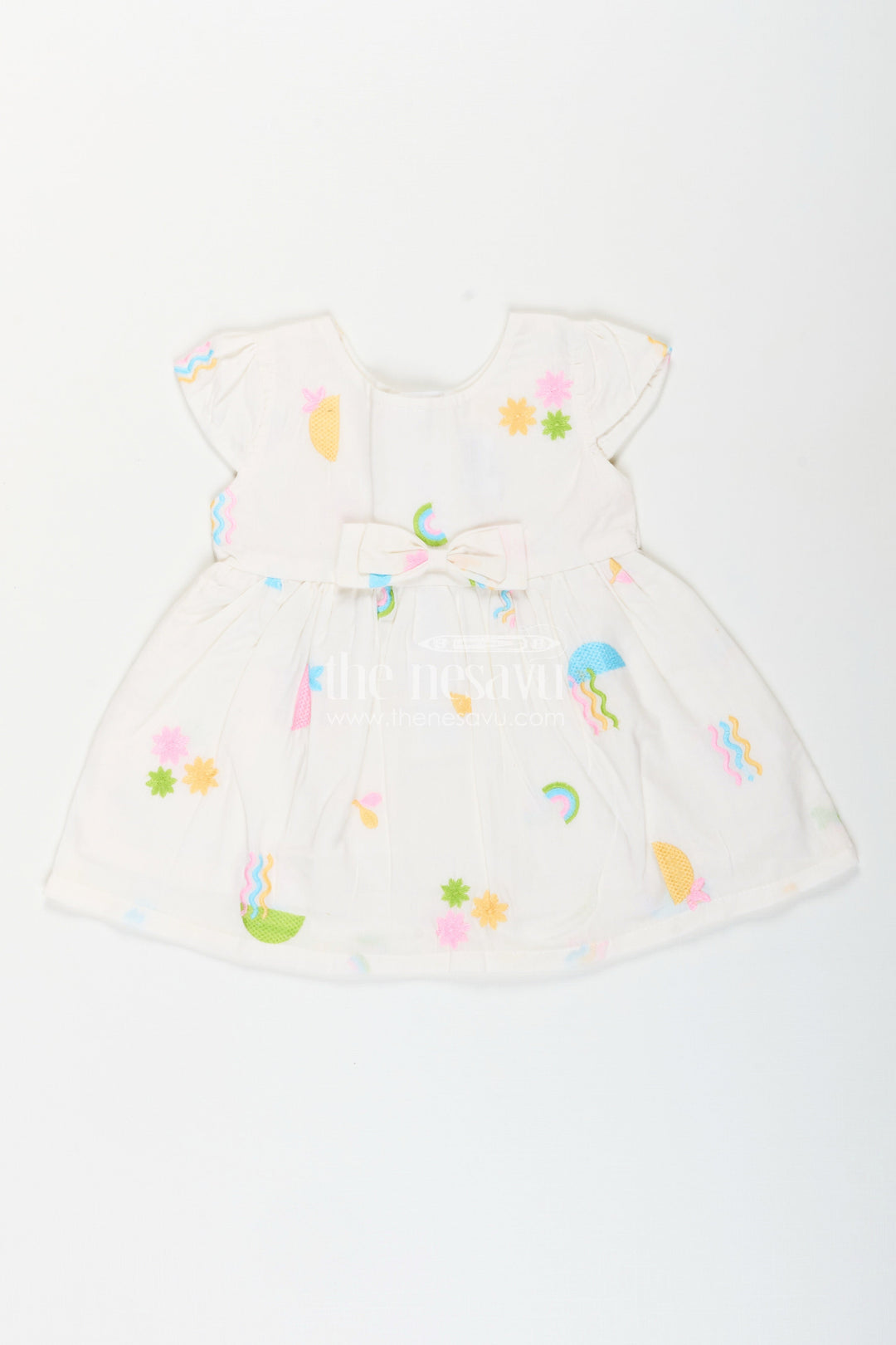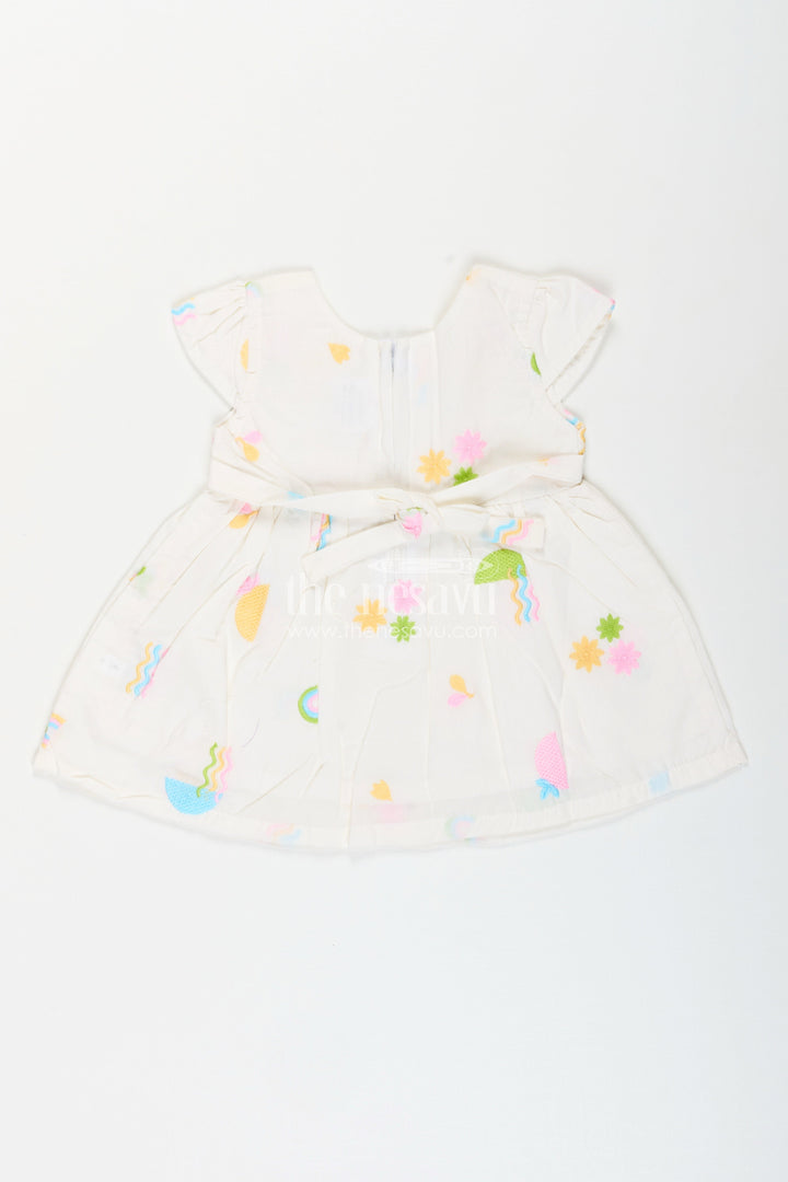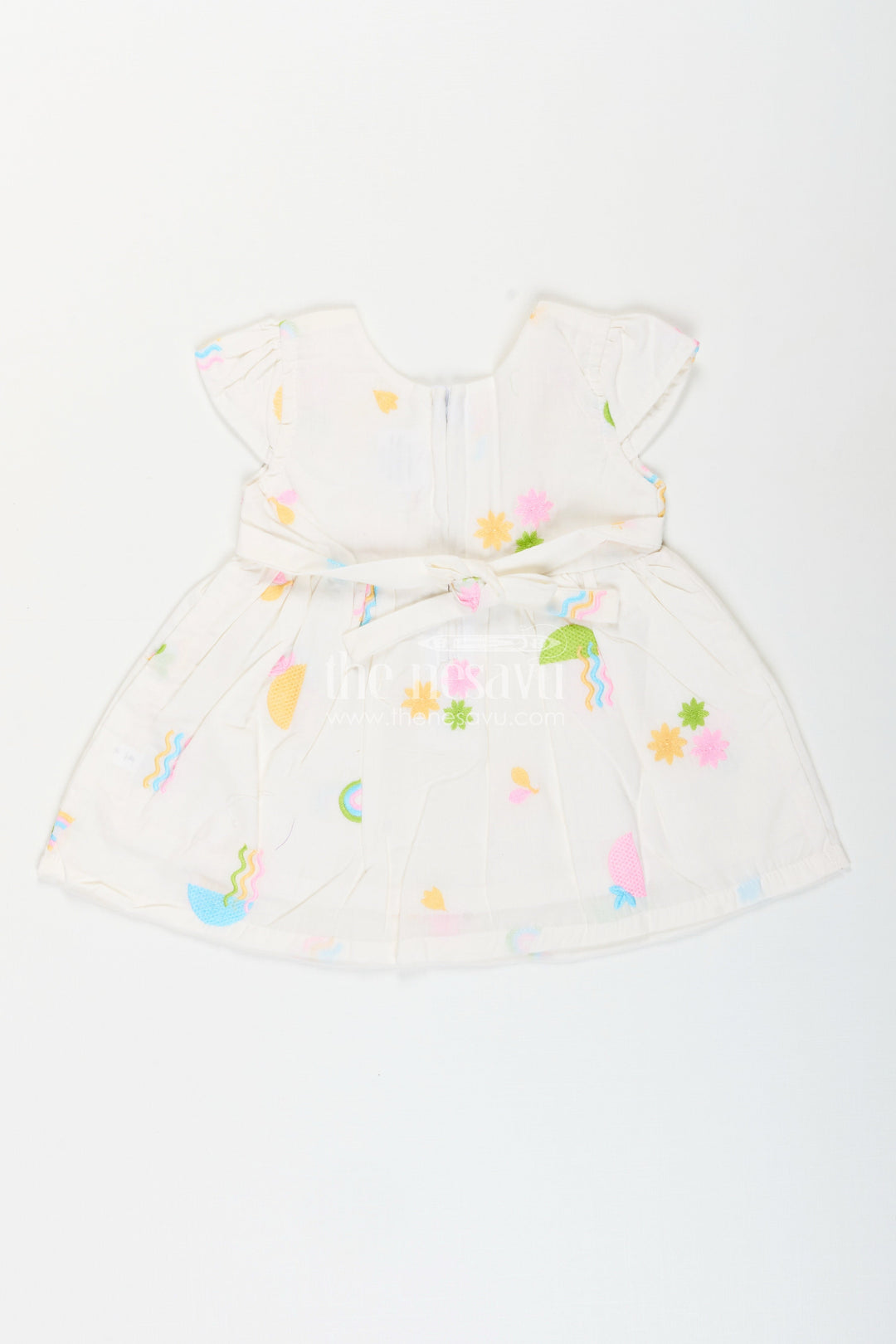 White Baby Girl Frock with Pastel Embroidery for Everyday Wear