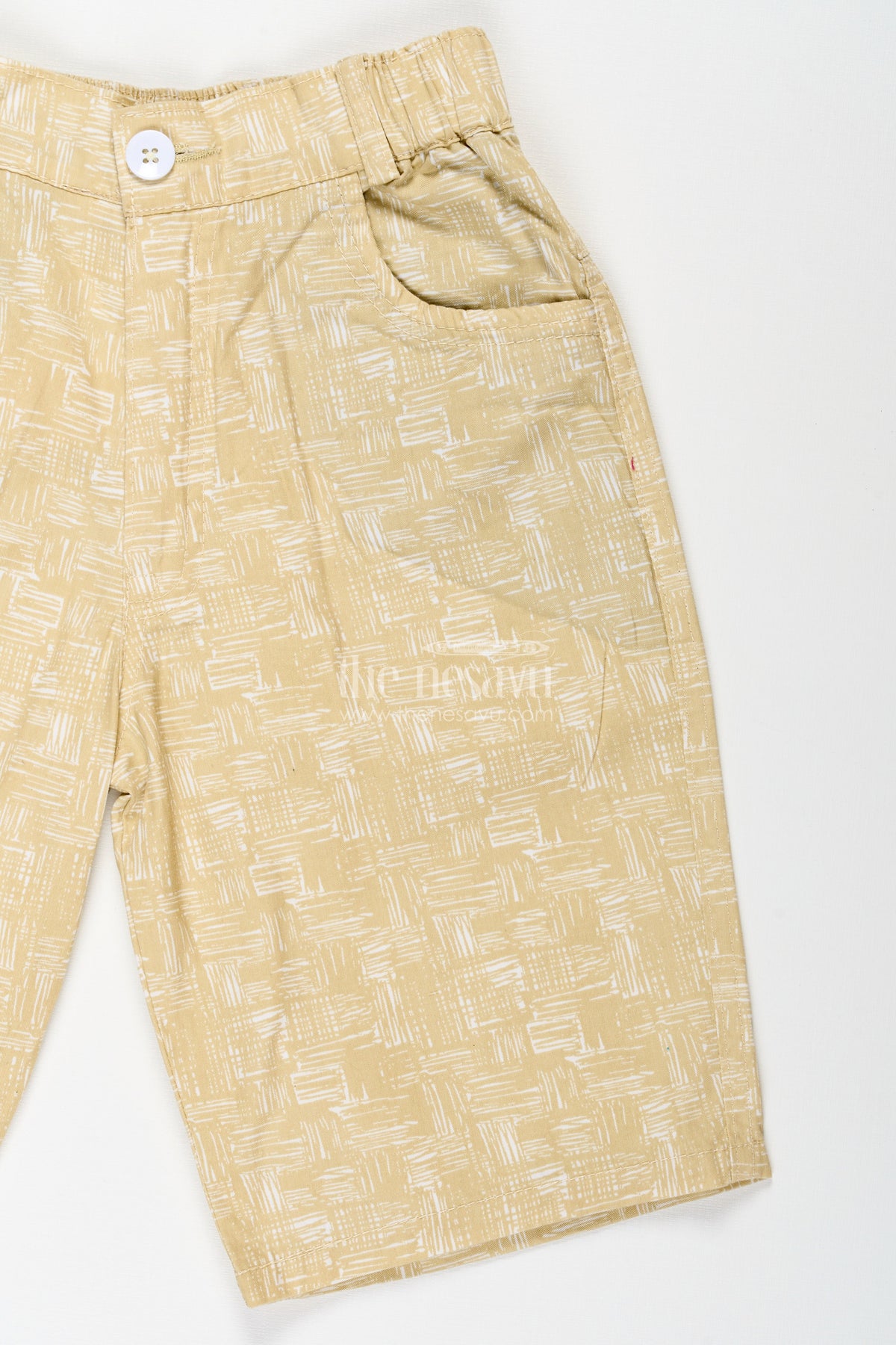 The Nesavu Boys Shorts Boys Digital Printed Shorts in Muted Yellow with Soft Cotton Blend and Casual Comfort Fit Nesavu Nesavu Boys Yellow Digital Printed Cotton Blend Shorts Easy Fit Stylish Look