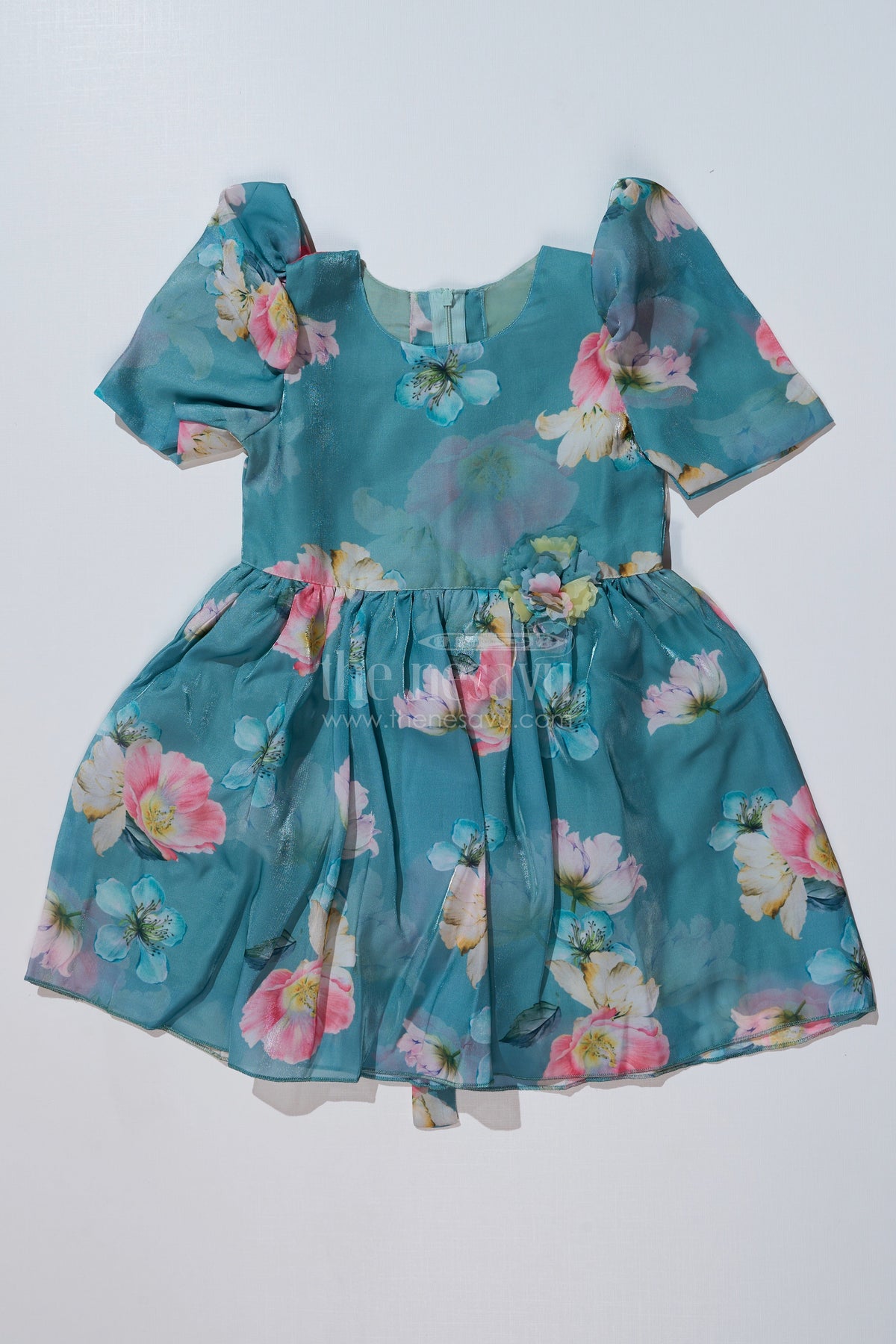 This casual birthday dress for girls is designed to combine style and comfort, making it a perfect choice for joyful celebrations. The dress features a stunning green floral print on soft chiffon fabric, offering a lightweight and breathable feel. Puff sleeves add a touch of elegance, while the flared skirt provides a playful vibe. Ideal for birthdays, playdates, or festive events, this dress pairs beautifully with simple accessories. A back zip closure ensures effortless dressing, making it as practical as it is stylish.