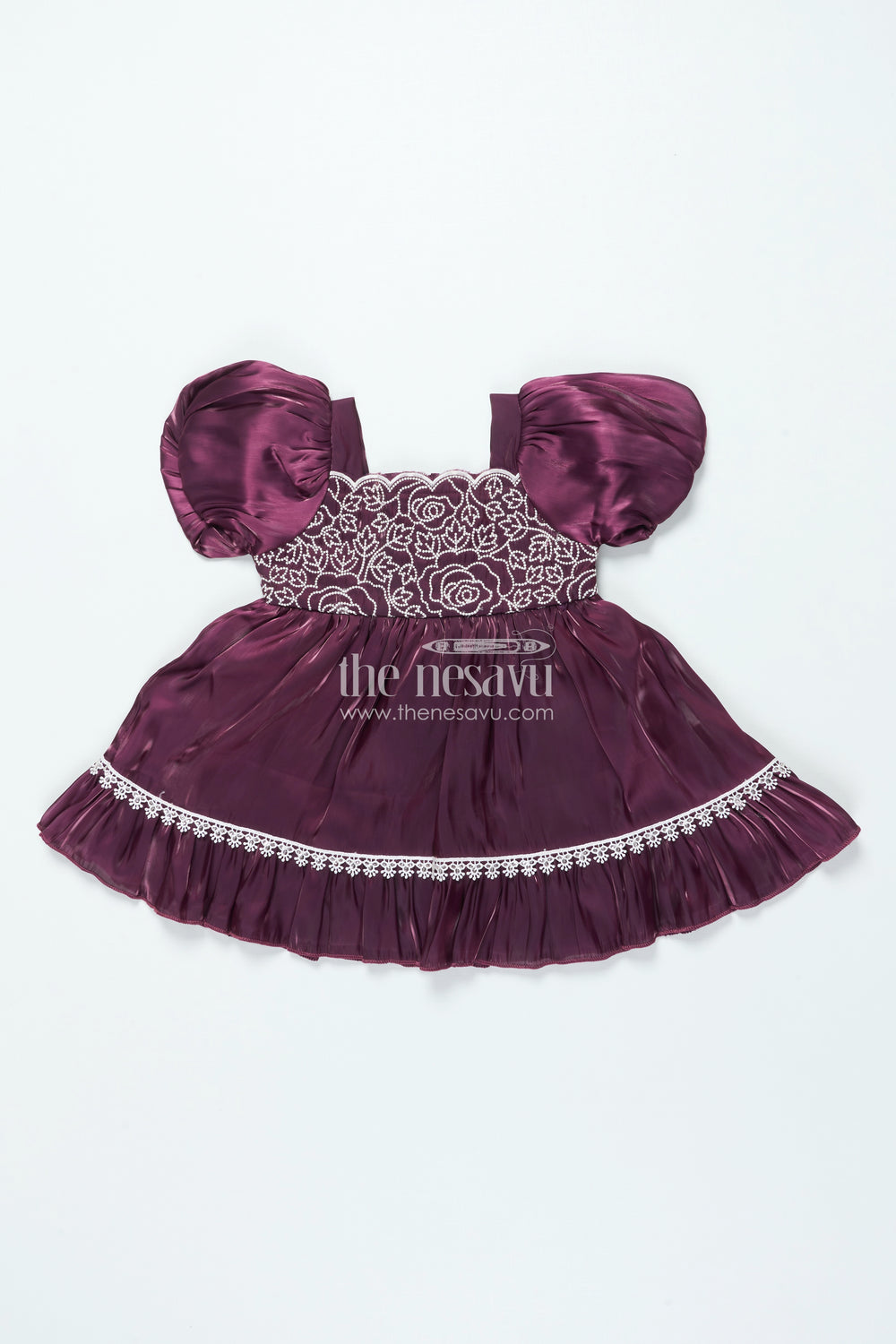 - Fancy frock for baby girls with delicate thread embroidery on the bodice