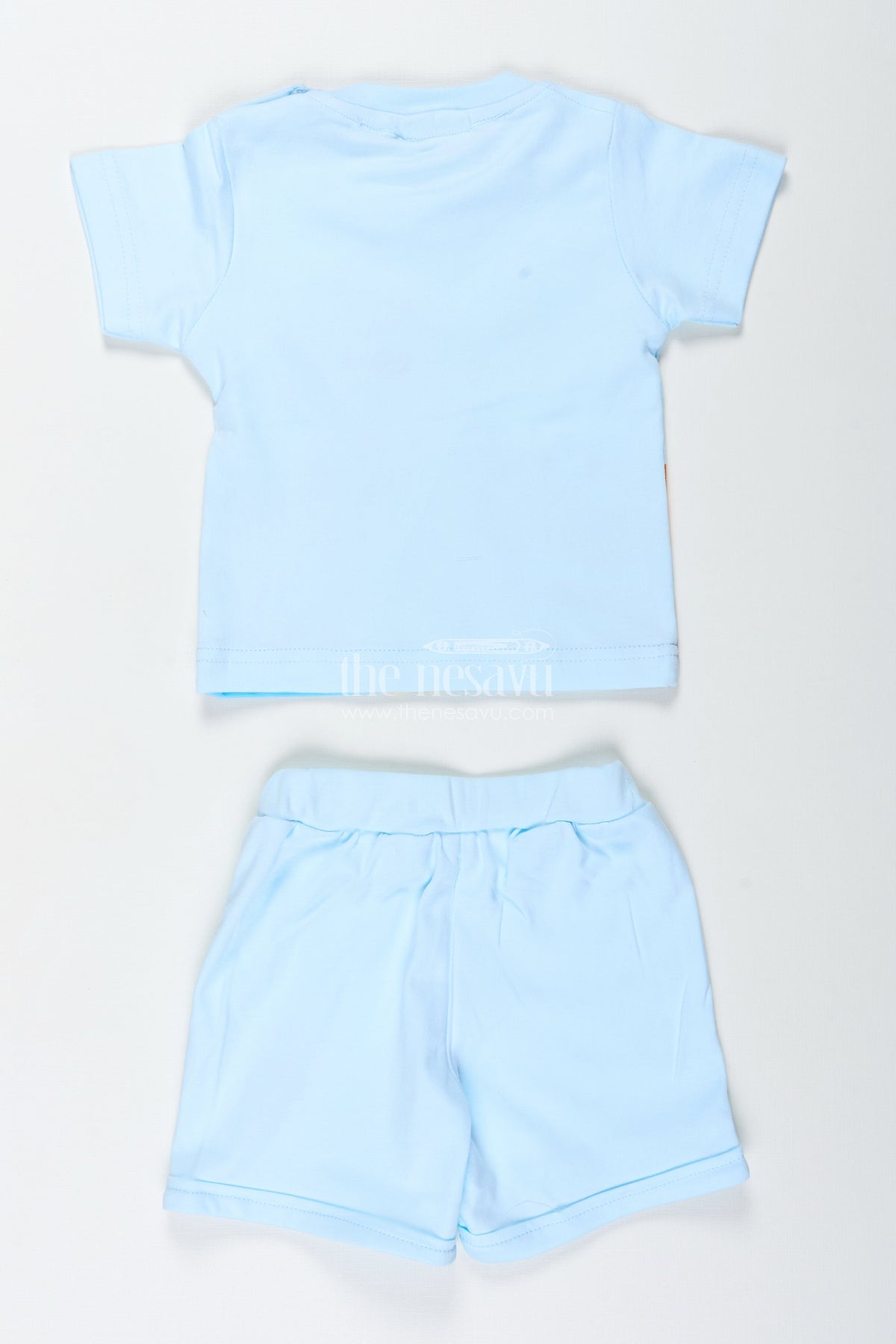 The Nesavu Boys Casual Set Boys Cotton Smart Casual Street Style Outfit with Tropical Digital Print Tee and Light Shorts for Everyday Play Nesavu 14 (6M) / Blue BCS284B-14 Nesavu Boys Smart Casual Street Style Outfit Cotton Digital Print Tee Light Shorts
