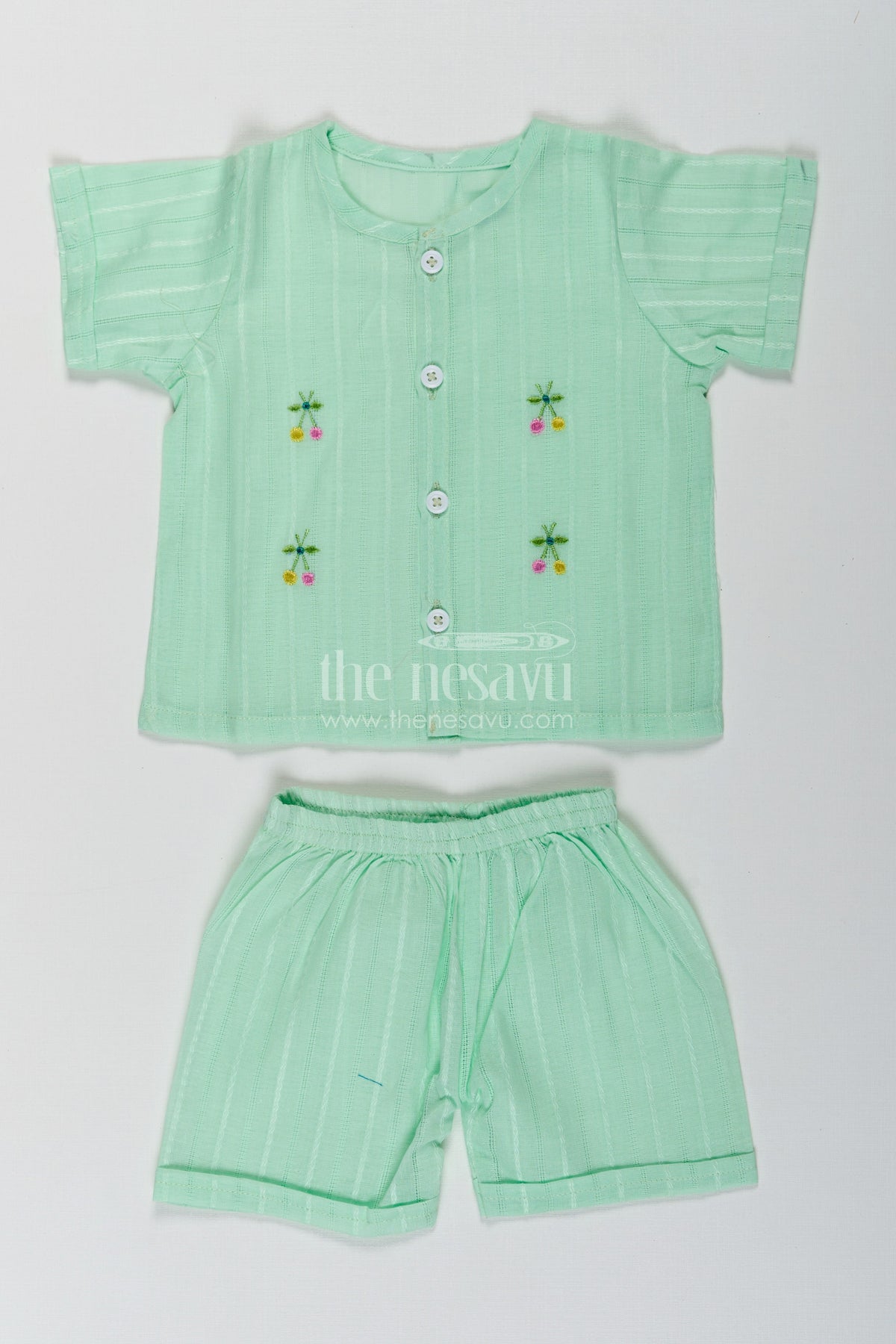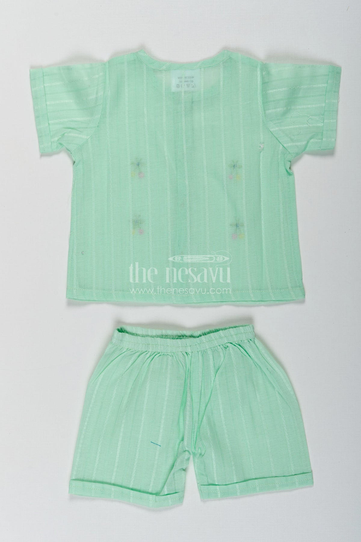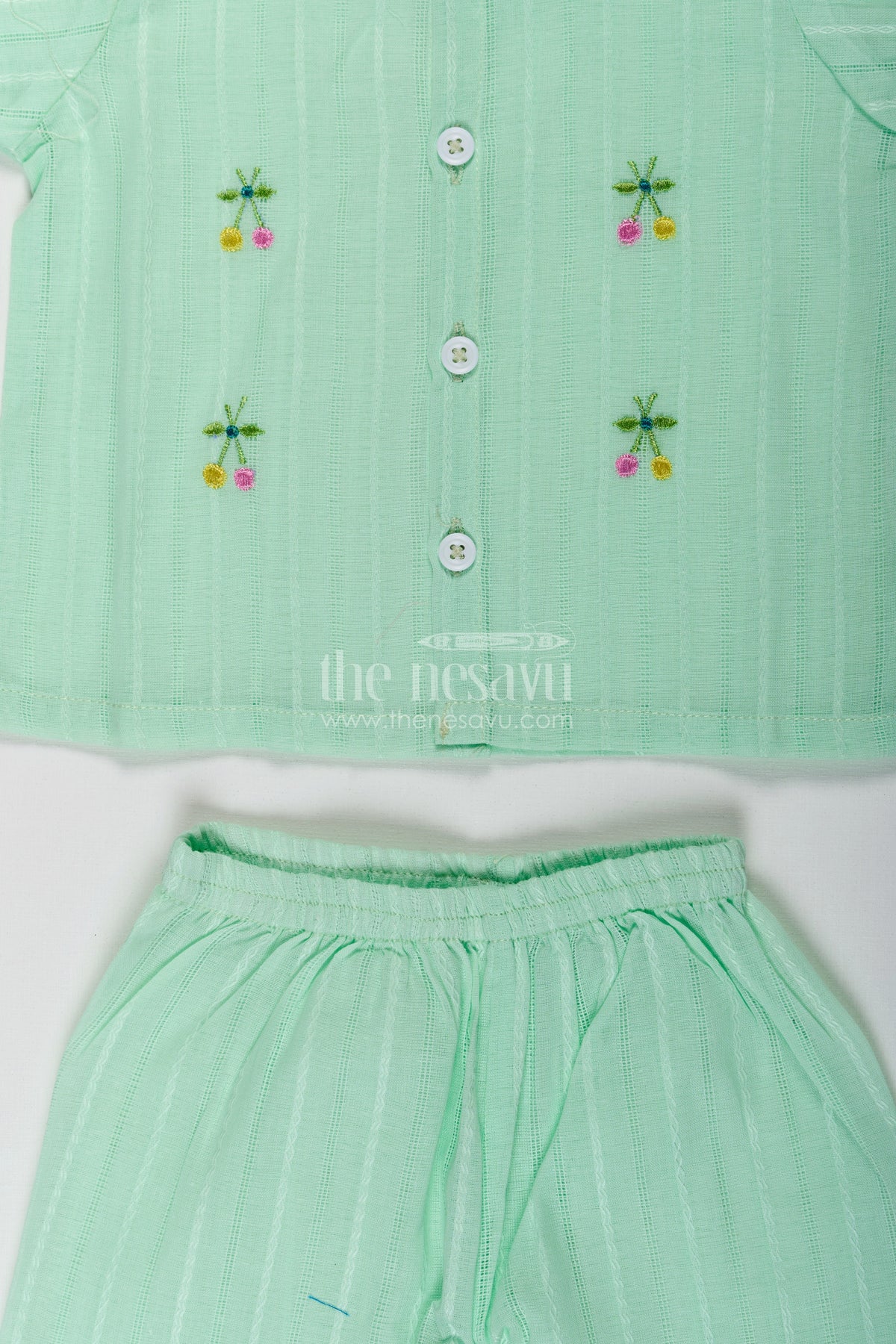 The Nesavu Baby Casual Sets Casual Dress Cute Baby Set in Light Green Cotton with Embroidered Motifs and Coordinated Shorts Nesavu Cute Baby Casual Dress Set Light Green Cotton Embroidery Matching Shorts | The Nesavu