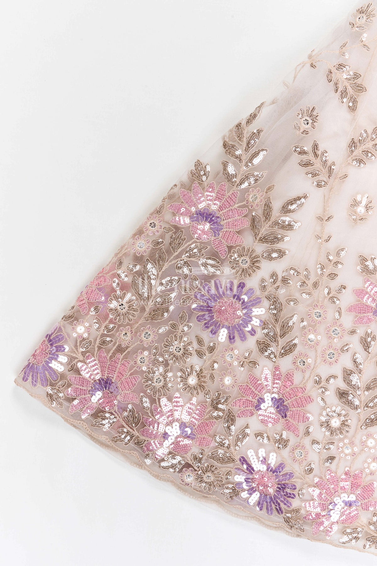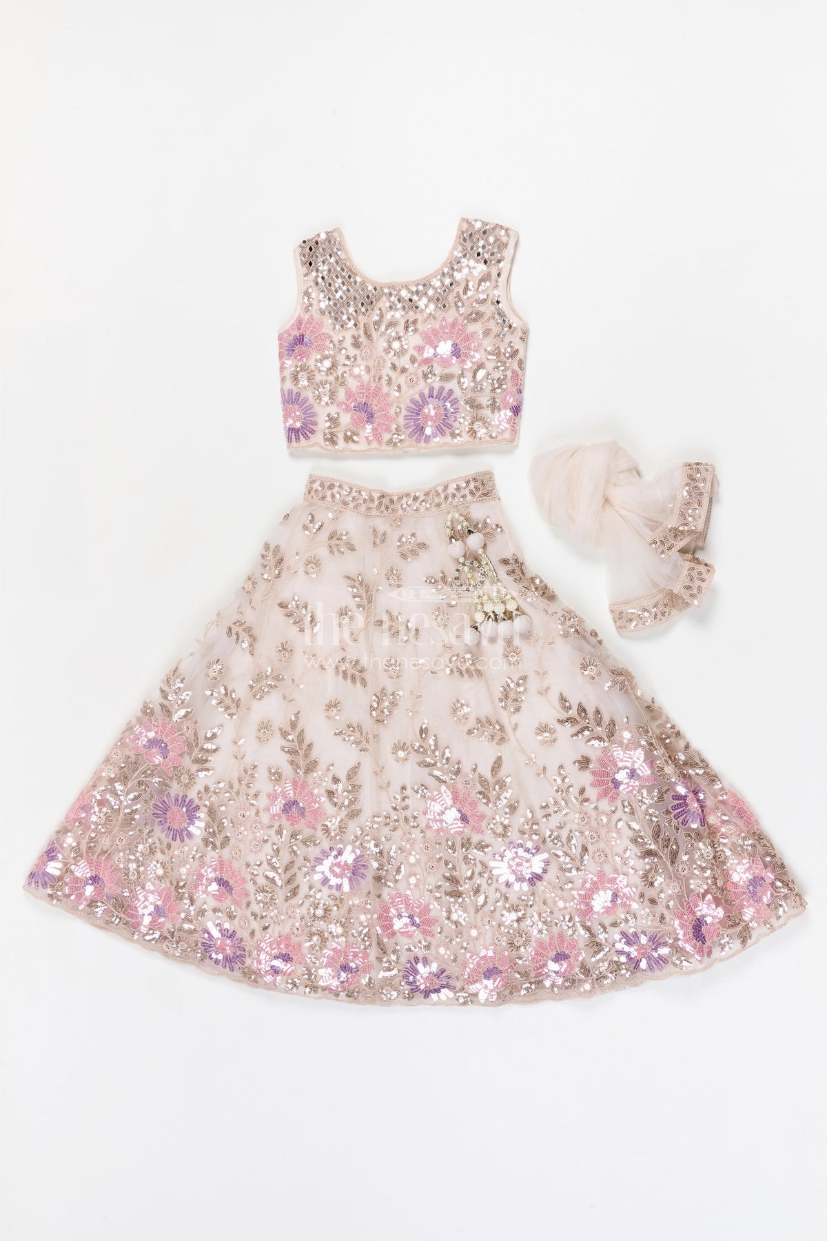 The Nesavu Girls Fancy Lehenga Girls Lehenga Set for Weddings and Grand Festive Celebrations Nesavu 24 (5Y) / Cream / Net GL874A-24 Nesavu girls soft net lehenga set with designer embroidered yoke for weddings