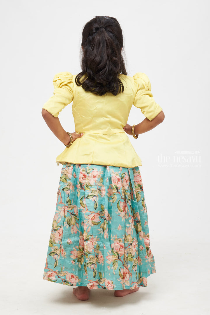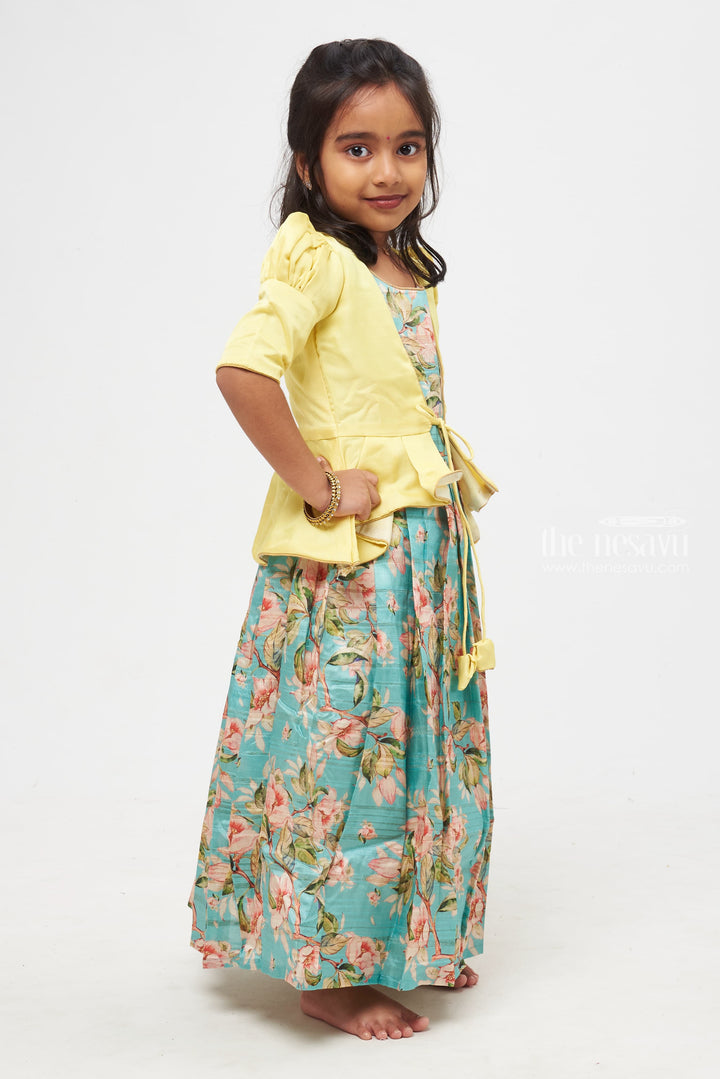 Spring Radiance: Children'S Lemon Peplum Jacket & Floral Anarkali for Girls