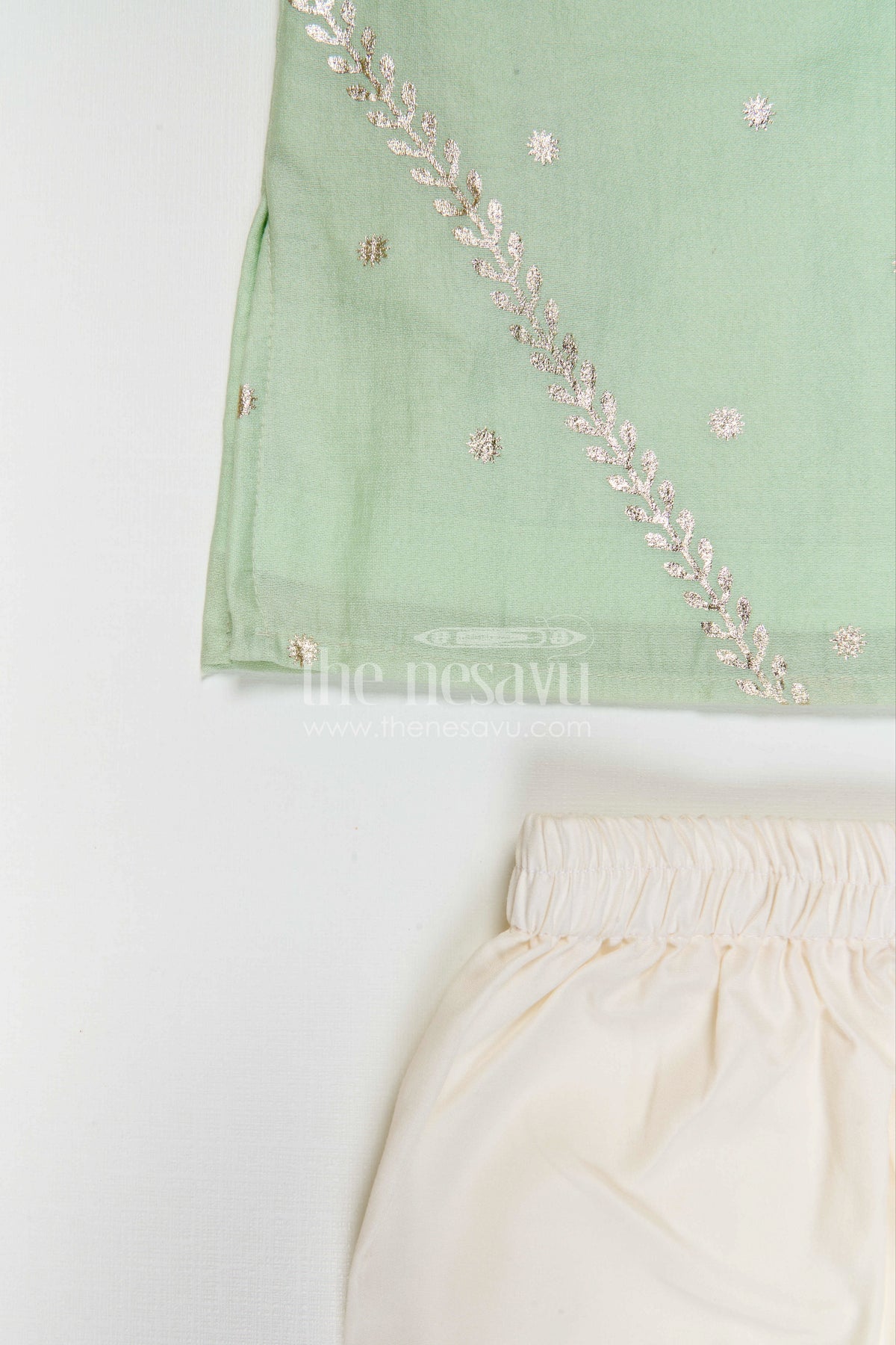• This boys kurta set for festive occasions is made from viscose silk blend for a smooth and rich finish