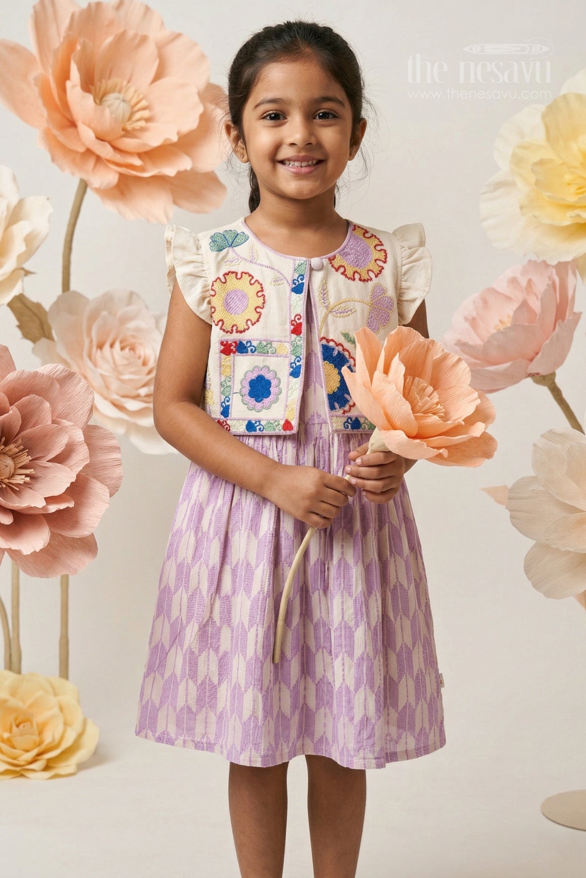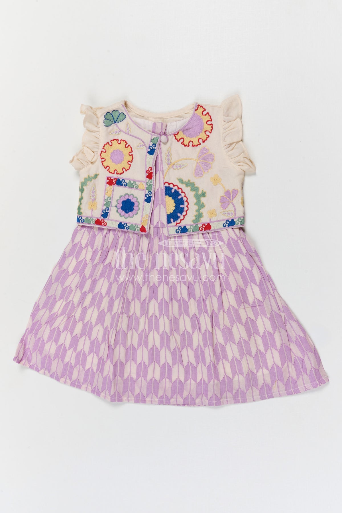 The Nesavu Girls Cotton Frock Baby Girl Cotton Frock for Festive Outings and Special Occasions Nesavu 20 (3Y) / Purple / Cotton GFC2163A-20 Nesavu baby girl cotton frock with embroidered jacket style for festive outings and special occasions