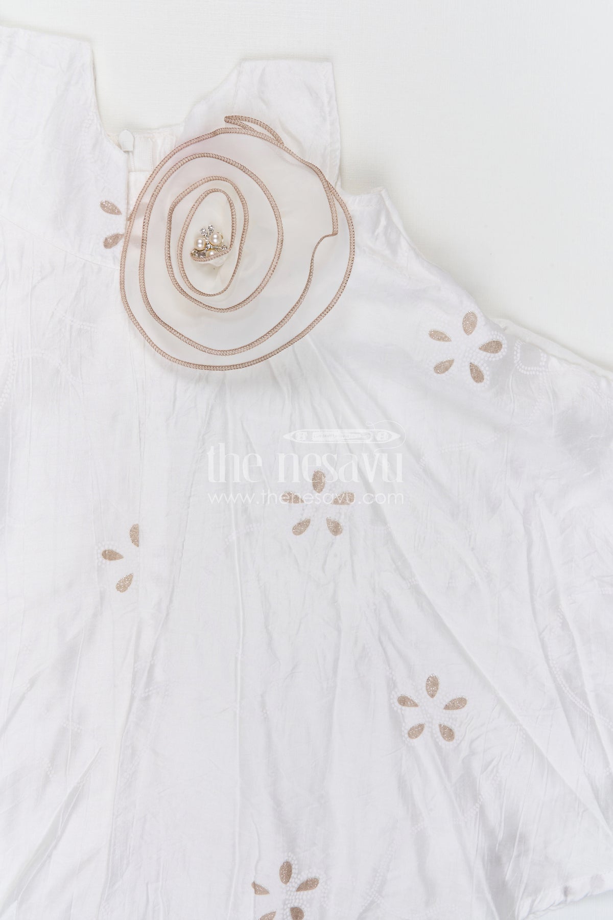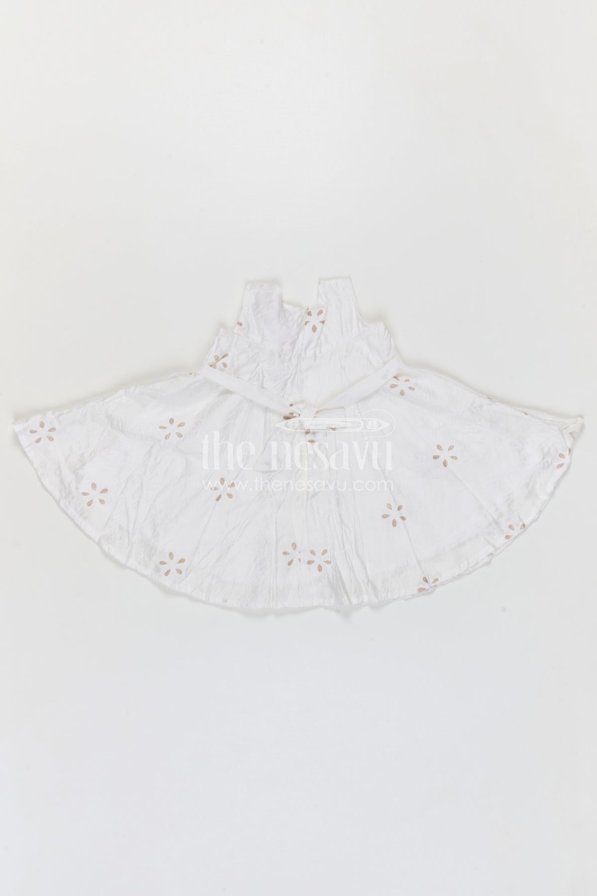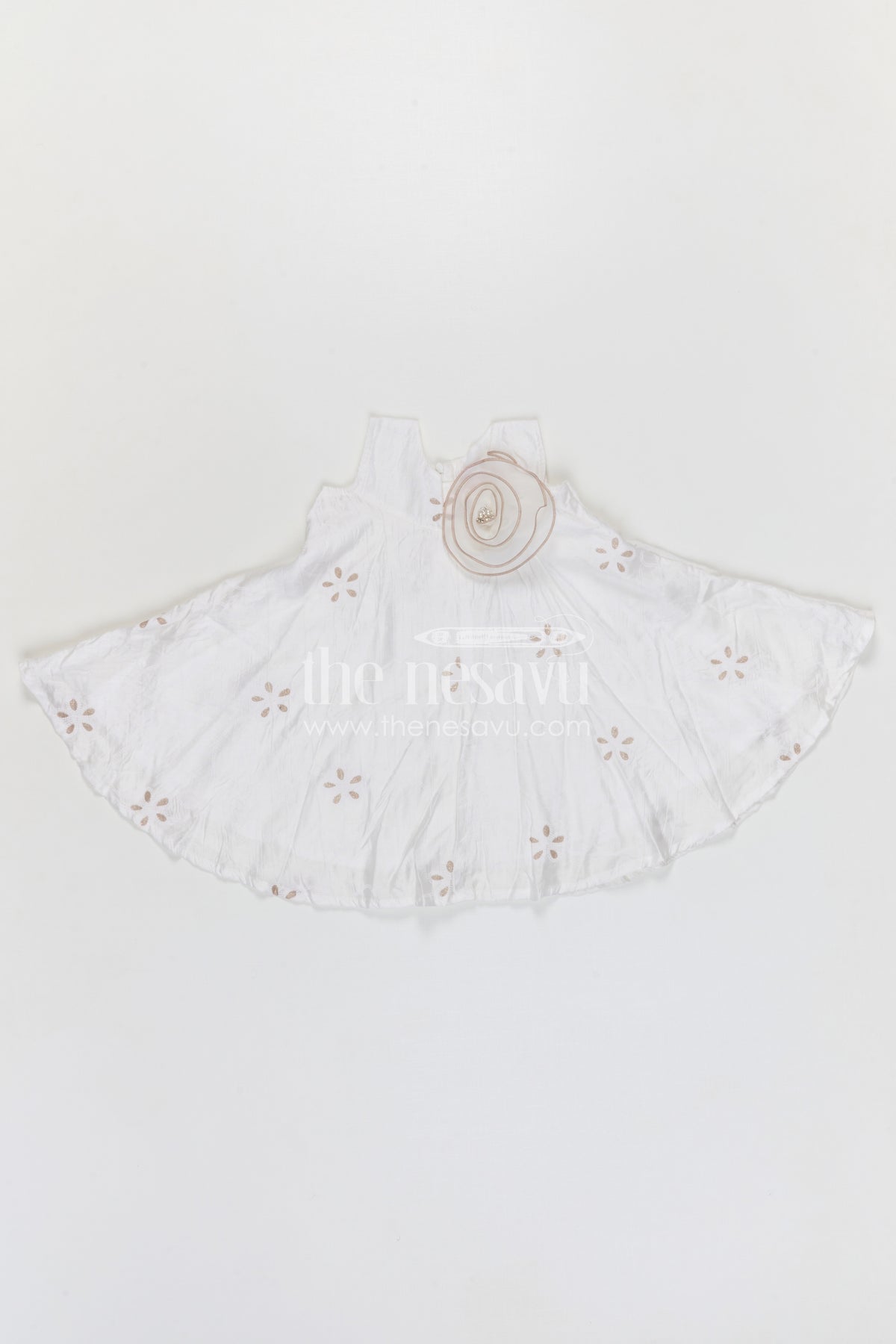 The Nesavu Girls Cotton Frock Girls Georgette Frock with Thread Embroidery for Festive Occasions Nesavu 20 (3Y) / White / Georgette GFC2169A-20 Nesavu girls georgette embroidered frock for festive and party wear